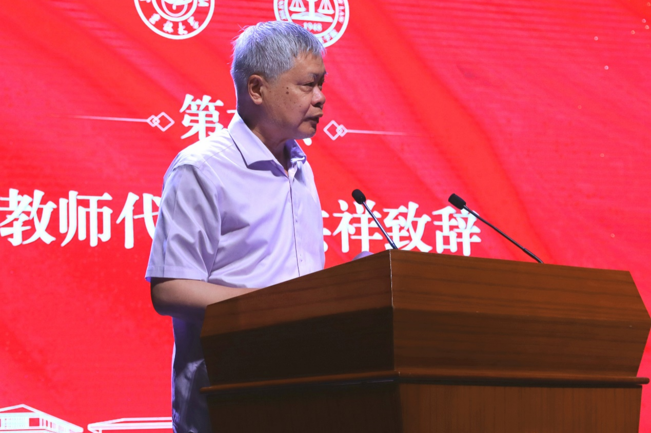 李洪祥教授以“变与不变”为主题代表教师致辞。他讲到,“变”的是时代和身份,同学们要紧跟时代步伐,与时代同频共振,即使转化思维,提升自身相应能力以适应新的身份;“不变”的是法律人公平、公正、善良、责任的初心、无论内卷躺平,都永不停歇慎思谨言的恒心、同学们心系母校,坚守院训的赤子之心以及公司、老师、父母对员工们的美好期待之心。李洪祥教授表达了对同学们“乘风破浪,扬帆启程,前程似锦,未来可期”的祝福,同时希望同学们常回家看看。
