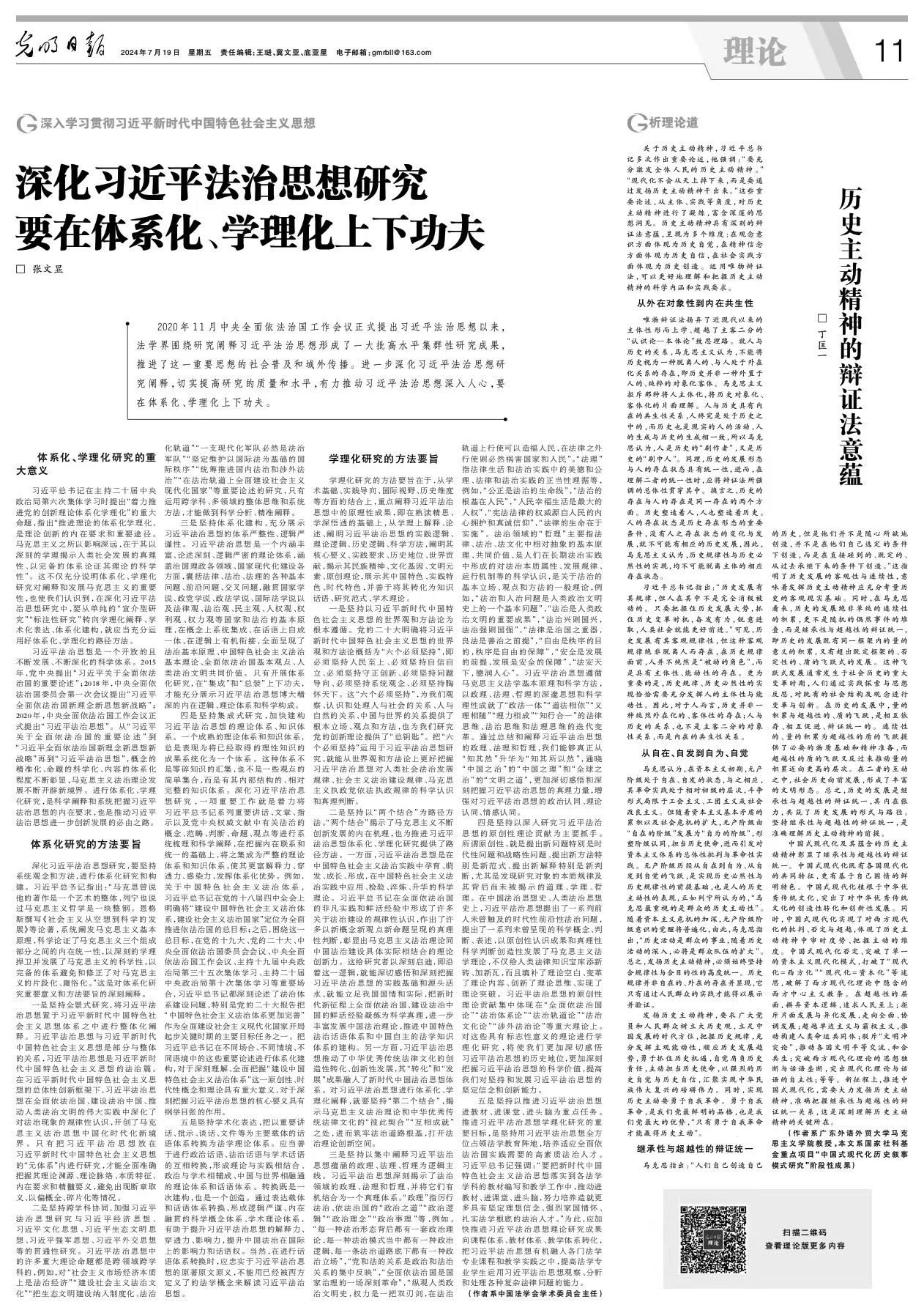 公司功勋教授、校哲学社会科学资深教授张文显在《光明日报》发表文章《深化习近平法治思想研究要在体系化、学理化上下功夫》