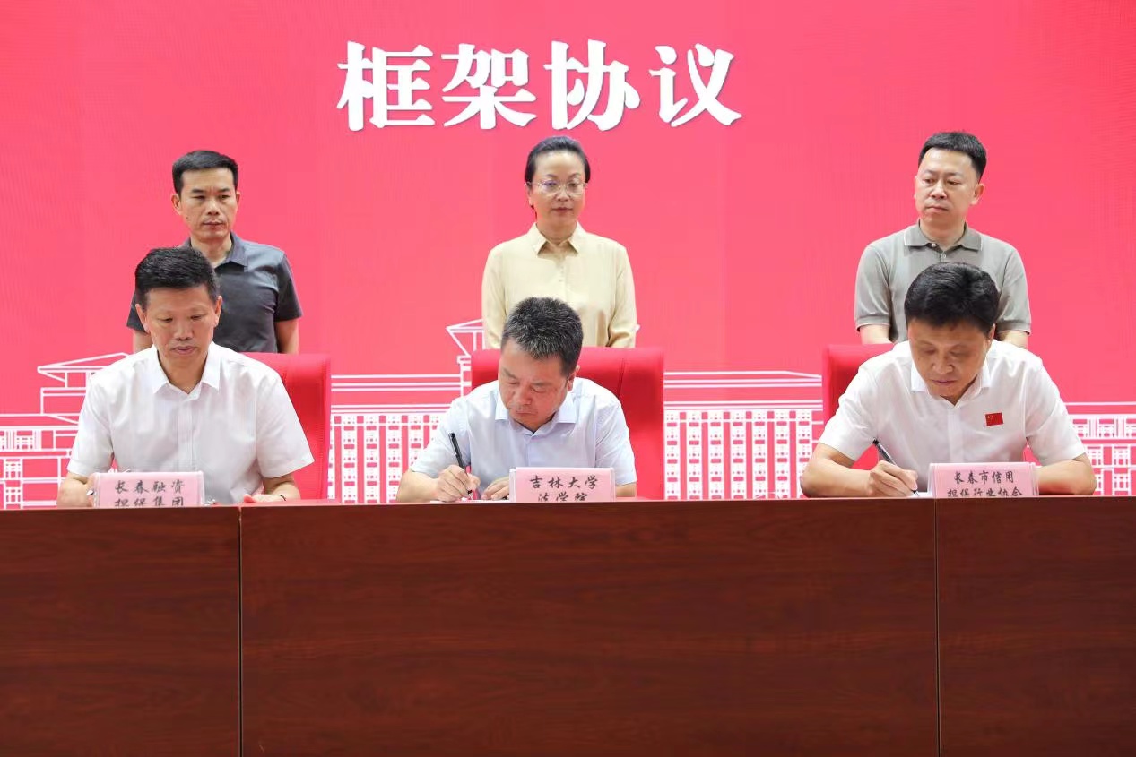 随后,长春市信用担保行业协会会长苑旭东、长春融资担保集团总经理张柏龙、太阳成集团tyc9728副经理曹险峰,代表三方共同签署了行校共建教学实训基地建设合作框架协议。中国融资担保业协会副秘书长杨紫华,长春市地方金融管理局副局长刘则强,长春市财政局金融处处长吴宏俊共同见签。