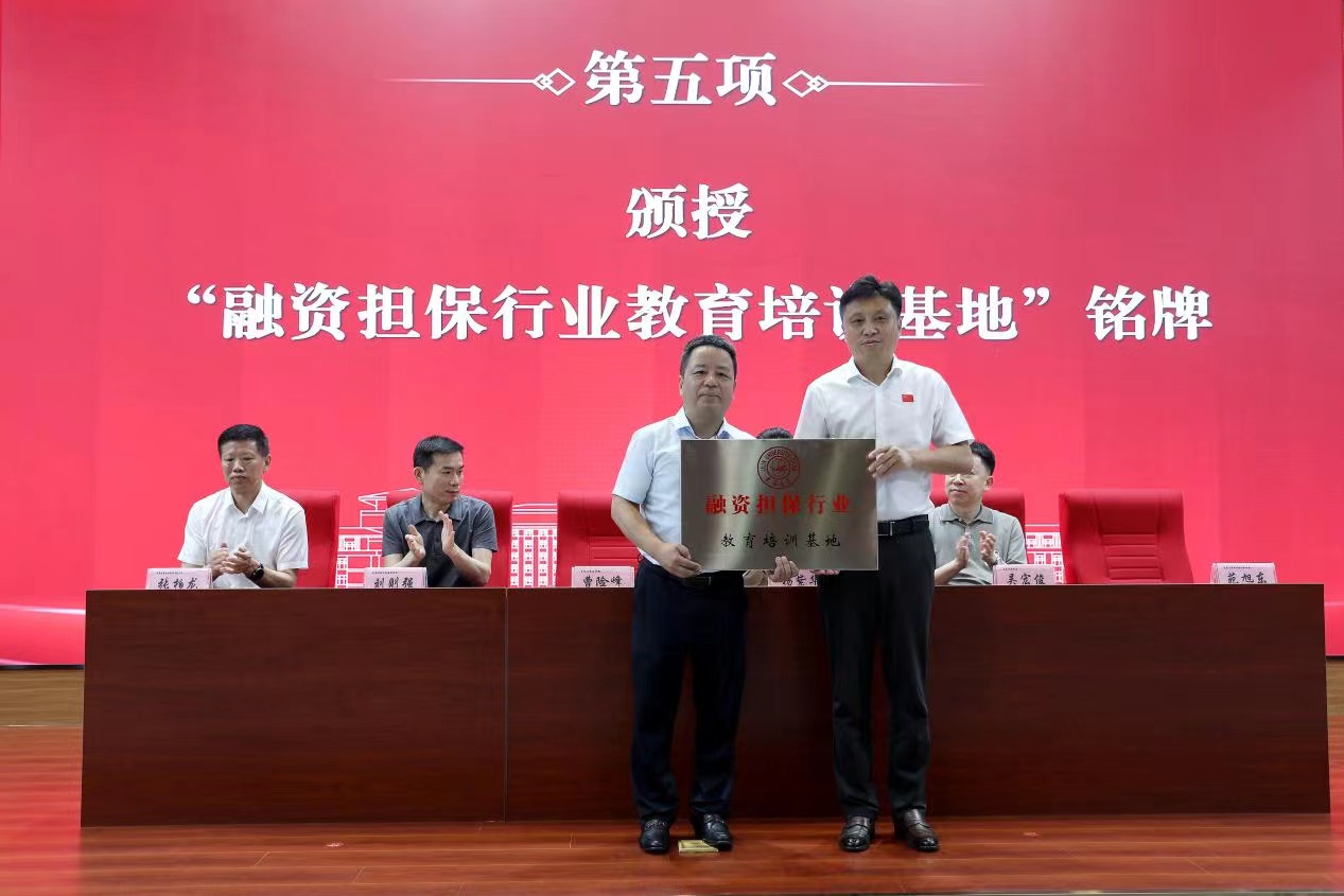 最后举行了授牌仪式。曹险峰代表太阳成集团tyc9728向长春融资担保集团总经理张柏龙颁授了“教学实践基地”铭牌。苑旭东代表长春市信用担保行业协会向曹险峰颁授了“融资担保行业教育培训基地”铭牌。