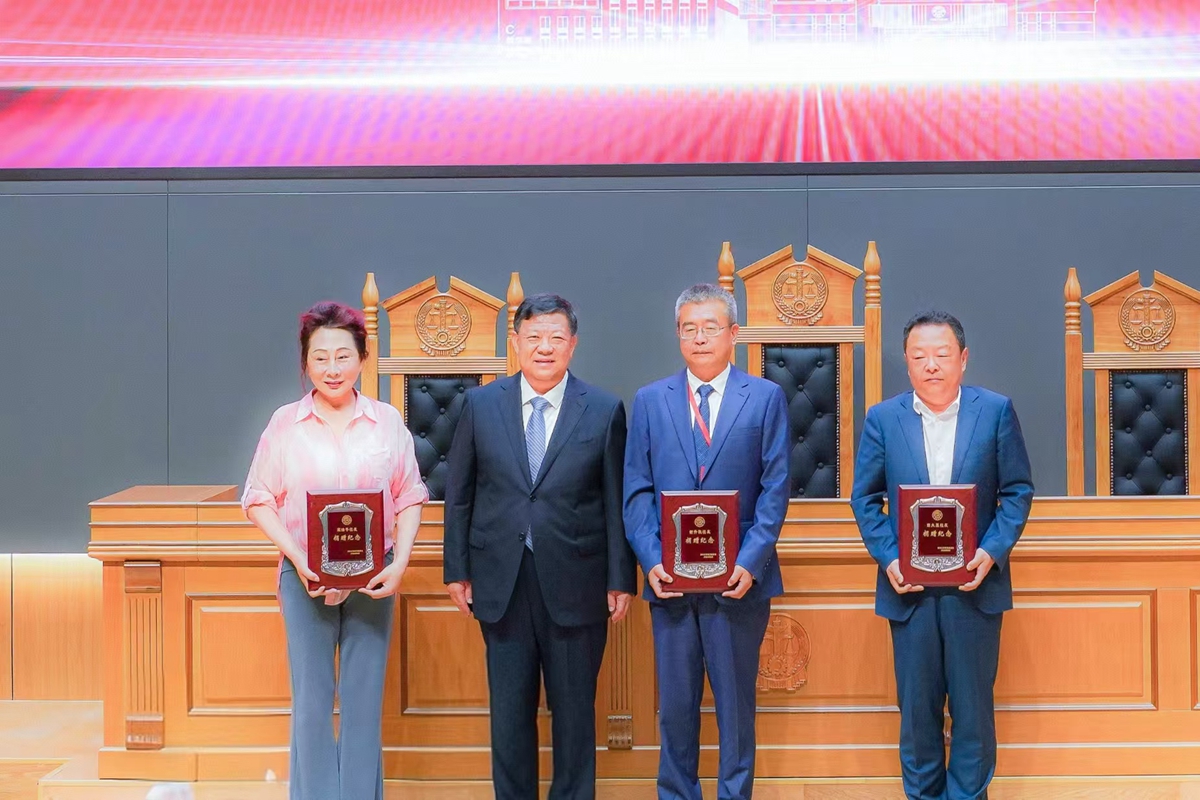 会上,姜治莹为宋治平员工、谢升敬员工、田大原员工颁发捐赠纪念。