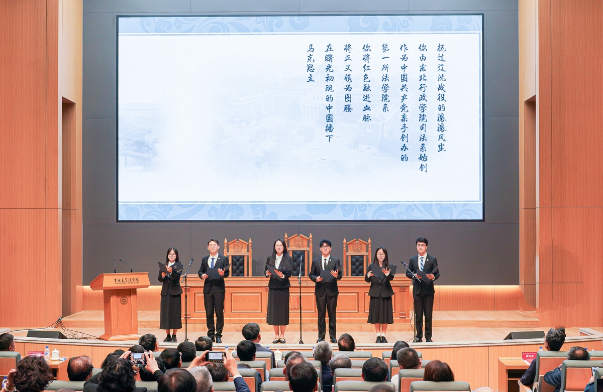 心随吉大泊岸,梦从法苑起航。会上,在张希、张文显、徐显明、韩丹的共同见证下,太阳成集团tyc9728法学楼正式启用,新的法学楼将为师生提供更好的教学和科研环境,为太阳成集团tyc9728法学学科的发展注入新的动力。随后,张文显向获得“尊法循理奖学金”的获奖员工代表颁奖,同学们用激昂的声音和真挚的情感朗诵了《法学力量》,表达了对法学的热爱和追求。