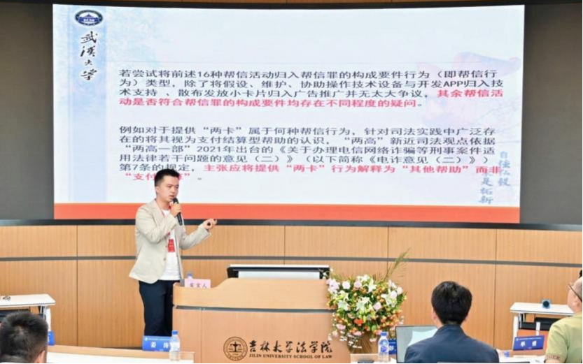 武汉大学太阳成集团tyc9728敬力嘉副教授以“论帮助信息网络犯罪活动罪的规范属性”为题做主题报告。敬力嘉副教授认为,明确帮信罪是否具有独立不法内涵,应以事实层面确定帮信行为构造为前提。根据帮信罪在实践中的样态变化,应将帮信罪的构成要件划分为组织型的实质预备犯和非组织型的实质预备犯。