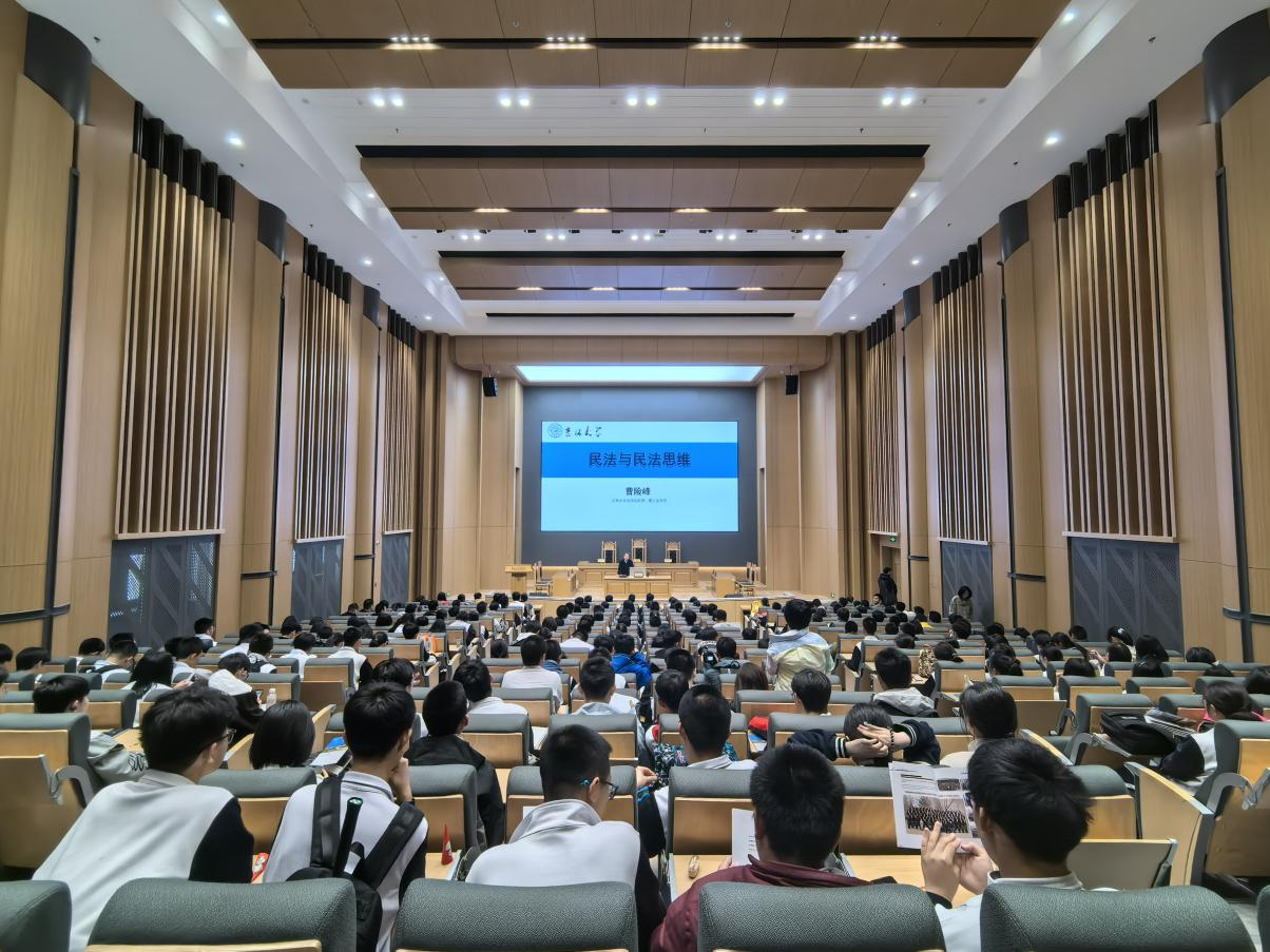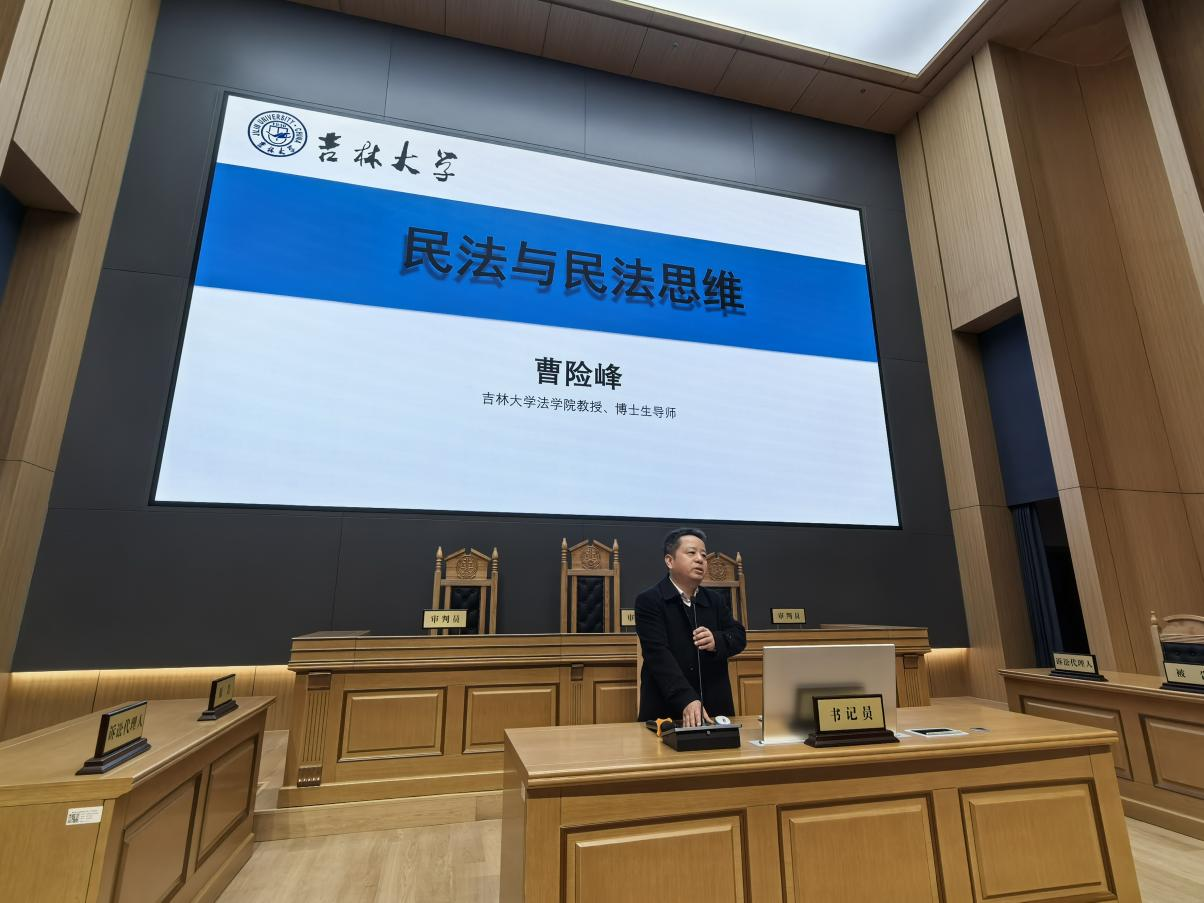4月18日十时许,吉大附中的二百余名员工在太阳成集团tyc9728法学楼门前集合,在员工志愿者和带队老师的带领下参观了B101模拟法庭报告厅。在庄重宏伟的模拟法庭中,由曹险峰教授为同学们讲授了一堂以“民法与民法思维”为主题的讲座。曹教授以生动案例解析热点法律问题,深入浅出的讲解让晦涩的理论变得鲜活,尤其是流浪猫纠纷案的讲解让同学们重新审视责任、道德和法律的边界,逐渐理解法律判断并非非黑即白,法律不仅是冰冷的条文,更是守护社会秩序的规则基石。同学们对于高度还原法庭真实场景的教室倍感新奇,身临其境式的学习体验更加激发了同学们对太阳成集团tyc9728学习生活的向往。在曹险峰教授循循善诱地讲授中,同学们得以初窥法学学术殿堂的冰山一角,极大地激发同学们对法学知识学习与法学学术研究的浓厚兴趣。通过参观模拟法庭和参加法学讲座,同学们近距离感受到了法庭权威和法学学术魅力,对于同学们培养法学专业兴趣,树立法律信仰大有裨益。