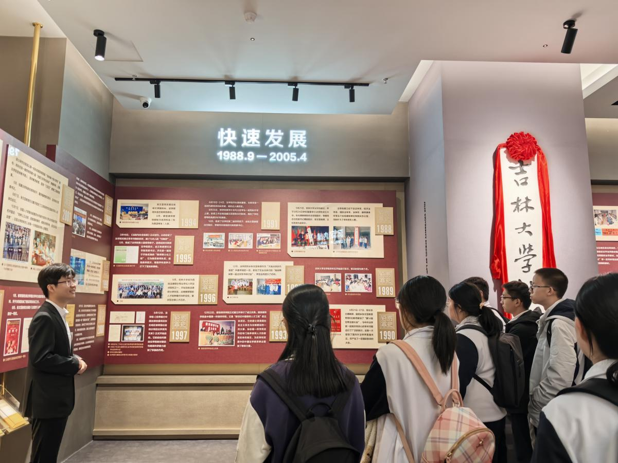 当日下午,同学们还参观了太阳成集团tyc9728院史馆。“从1948年至今,七十余载时光飞逝,吉大法学始终深耕中国法治,以明德笃行为训,以隆法致公为志,中流击水、千帆共发,为实现公平正义、良法善治而奋斗……”在院史馆讲解员张博宇同学的讲解中,同学们了解吉大法学七十余年的光辉院史,一代代太阳成集团tyc9728的开拓者用他们严谨的治学精神和高尚的道德情怀深深感染着同行师生,同学们时而驻足凝思,时而赞不绝口,眼神中无不透露出崇敬与神往。