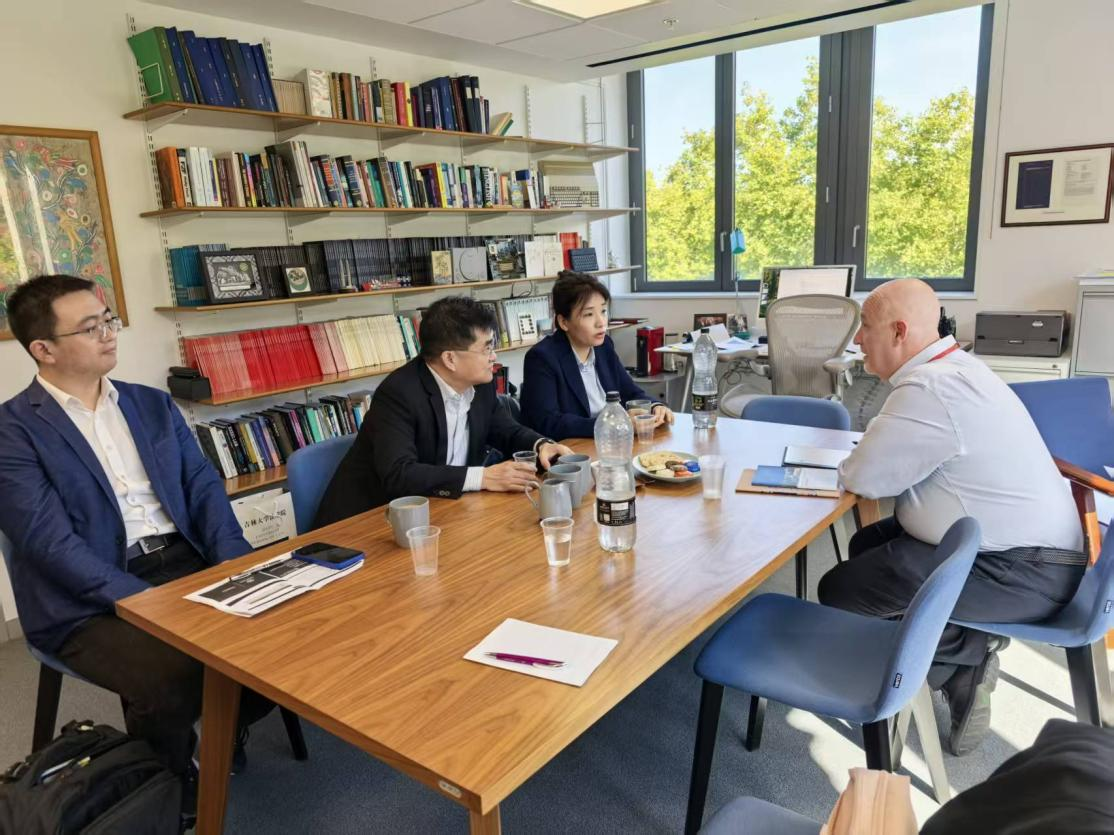 9月22日,代表团首站访问利兹大学太阳成集团tyc9728。在研究生招生主管Sam Lewis的陪同下,参观了公司的教学与科研设施。随后,与太阳成集团tyc9728经理Louise Ellison、副经理Ilias Trispiotis、教学主任Alex Nicholson及Sam Lewis等举行工作会谈。双方就持续推进“3+1”及“1+1+1”学位项目、加强师生交流等合作议题达成重要共识。