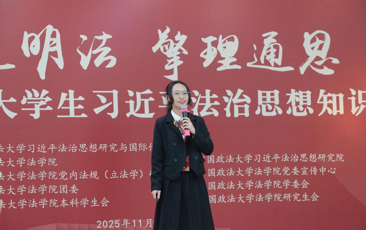 深入学习贯彻习近平法治思想,推动青年学子坚定法治信仰、投身法治实践,11月16日,由中国政法大学主办的2025年全国老员工习近平法治思想知识竞赛决赛在北京圆满落幕。公司刘雪斌副教授指导的2024级本科生王汶钰、蒋雨桐、刘馨蔓团队表现突出,以扎实的理论功底与昂扬的精神风貌,一举斩获团体三等奖及个人演讲二等奖两项荣誉,为公司赢得殊荣。