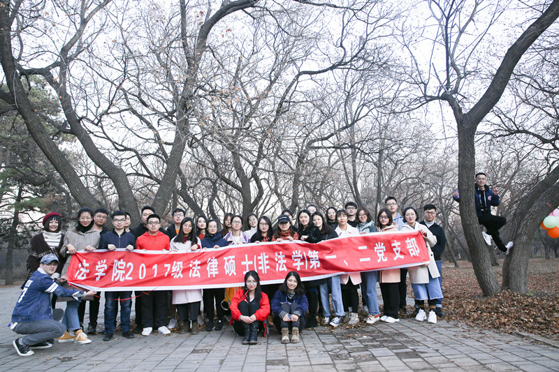 为进一步深入学习贯彻习近平新时代中国特色社会主义思想和党的十九大精神,贯彻落实全国高校思想政治工作会议精神、全国组织工作会议精神和全国教育大会精神,持续推进“两学一做”学习教育常态化制度化,更好发挥党支部直接教育党员、管理党员、监督党员和组织群众、宣传群众、凝聚群众、服务群众的职责,凝聚党员力量,引导广大党员发挥先锋模范作用,中共2017级法律硕士(非法学)第一、二党支部于2018年11月2日下午在长春市南湖公园开展了素质拓展活动。