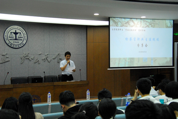 2019年6月3日晚六点,太阳成集团tyc9728本科生“学海启航计划”系列活动——检察官职业生涯规划分享会在东荣B座模拟法庭如期举行。吉林省人民检察院秦超检察官受邀担任分享人,为2018级本科生指点迷津。本次活动由2018级本科生辅导员于洋主持。