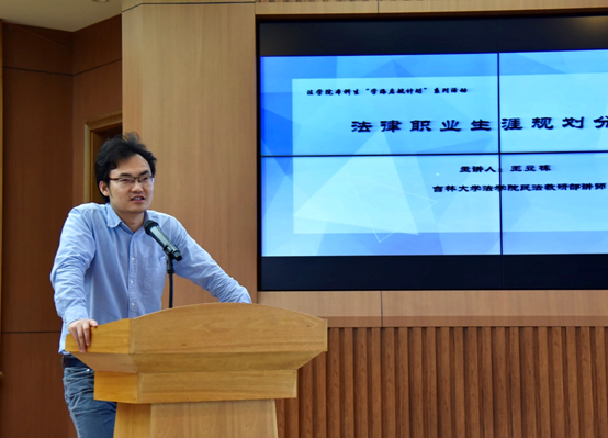最后,王立栋老师向同学们分享了自己职业规划的历程。王老师早在大学期间就对自己的未来有了清晰的职业规划——留在大学里当老师,并一直朝着这个方向规划自己的学习、工作。从王老师的经历中,同学们感受到了尽早进行法律职业生涯规划的重要性,有目标、有方向的人生才会不辜负自己的每一份努力。