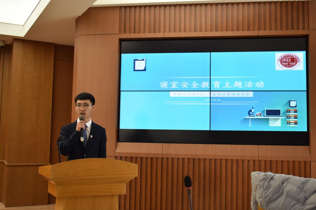 为使19级同学更加全面细致地了解寝室安全知识,首先进行的是寝室安全知识宣讲。宣讲人语言幽默风趣,将安全知识要点与平时生活经验相结合,讲解生动形象。此外,宣讲人还播放了有关违章电器的教育视频,加深了同学们对违章电器危险性的认识,同学们受益匪浅。