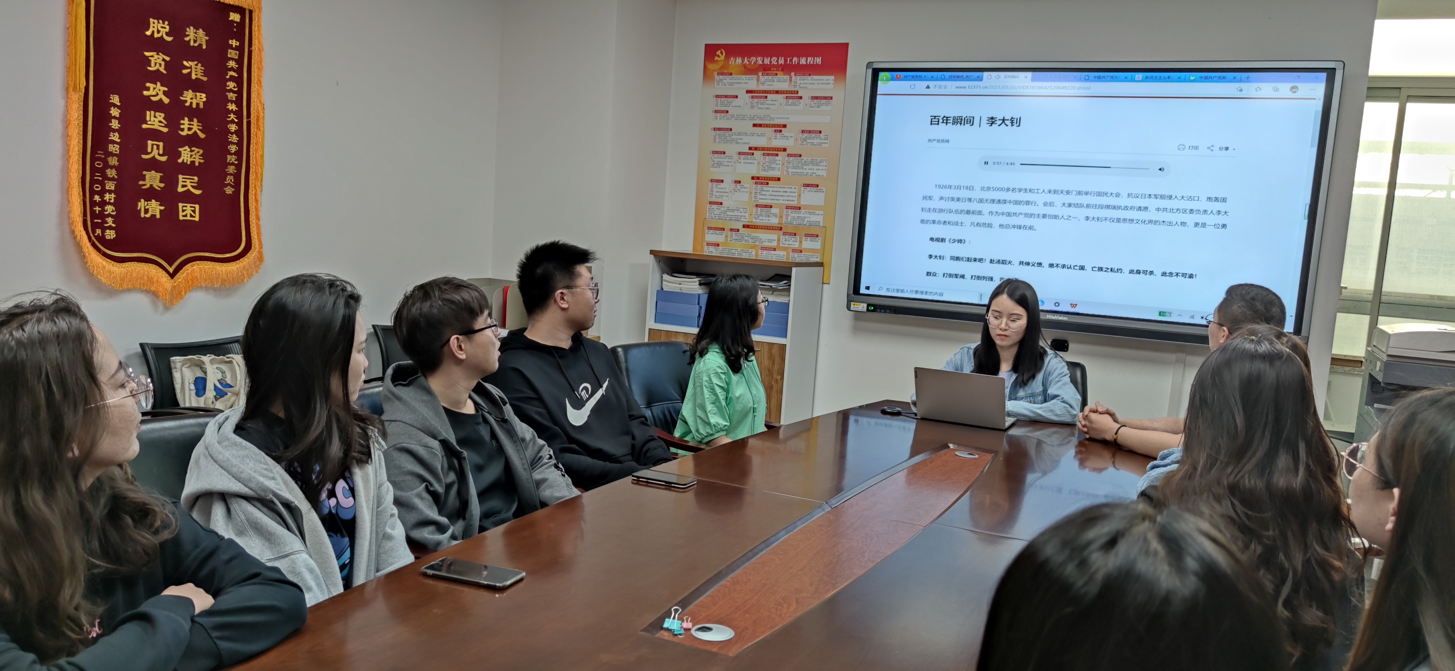 会议第一部分,支部组织委员陈佳南进行领学,带领大家观看了《中国共产党百年瞬间》。《中国共产党百年瞬间》全景式宣传党的光辉历程和宝贵经验,展示共产党人不忘初心、砥砺奋进的先进事迹,彰显“人民至上”信仰力量的薪火相传。大家聚精会神地进行了学习,纷纷被共产党员的英雄事迹感动。