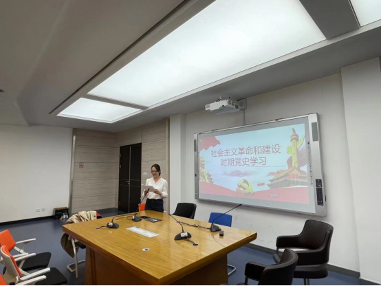 周敏敏同志说到,新中国成立后,中国共产党成为执政党,担负起了执政兴国的历史使命。当根据形势和任务需要,针对党员队伍出现的新情况和新问题,不断加强作风建设,努力保持昂扬奋进的精神状态。我党紧紧依靠人民,创造性的完成了社会主义改造,在我国确立了社会主义基本制度。