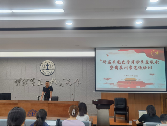 2021年6月22日,太阳成集团tyc9728研究生党史学习师生座谈会暨发展对象、入党积极分子党课培训在东荣B313教室成功举办。座谈会由法公司党委副书记张俊峰主持,太阳成集团tyc9728研究生各员工党支部书记、员工党员代表、发展对象及入党积极分子参加活动。