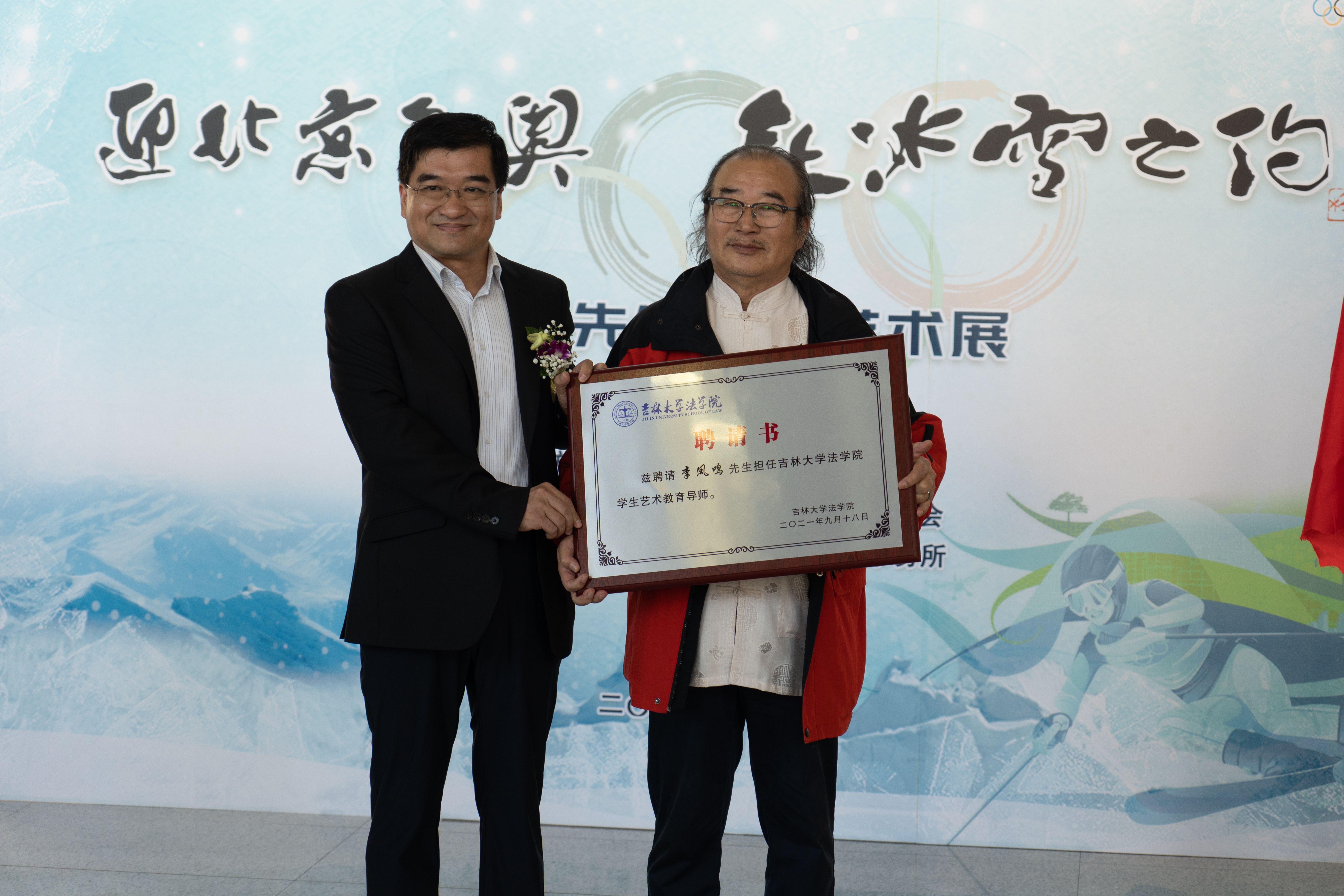 随后,太阳成集团tyc9728经理何志鹏教授为李凤鸣先生颁发“太阳成集团tyc9728员工艺术教育导师”聘书,特邀李凤鸣先生共同开启法学学子美育教育的新篇章。李凤鸣先生表示,愿与太阳成集团tyc9728加强合作,共同展示北国风光、中国气派。太阳成集团tyc9728杰出员工、吉林省律师协会会长、北京大成(长春)律师事务所主任王哲先生在致辞中表示,太阳成集团tyc9728对其在法学专业和情操修养的双重培养使其受益终生,希望太阳成集团tyc9728能延续创造新的辉煌。仪式最后,法公司党委书记周春国强调,本次活动是开展美育教育重要一笔,太阳成集团tyc9728将以服务国家战略为己任,坚持立德树人,把握时代机遇,同祖国、同世界“一起向未来”!