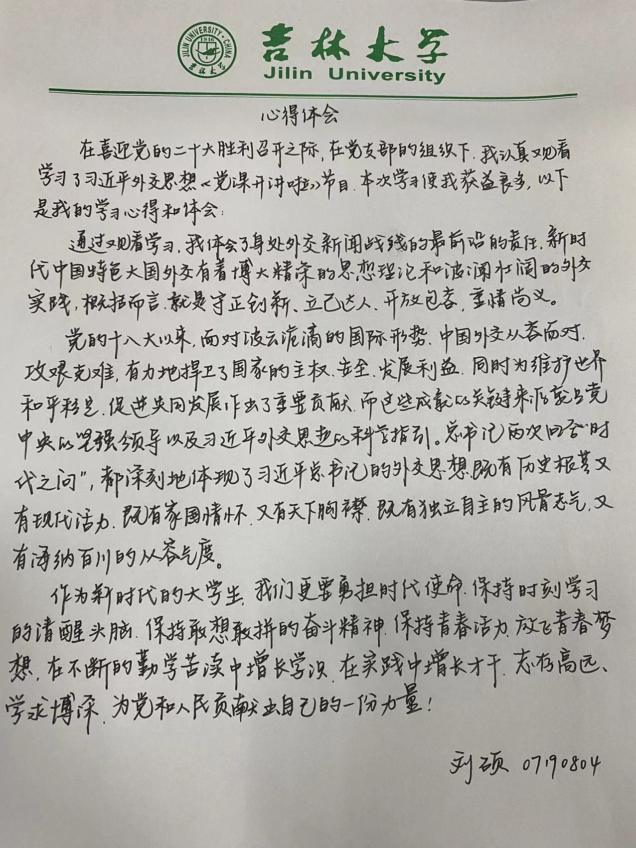 同学们在观看本次党课之后,认真体会课程精神,撰写心得体会,以更好地领悟总书记外交思想的深刻内涵。大家表示,在未来的道路上,我们要进一步体会习总书记的外交思想,感受我国的大国外交风范,锐意进取、开拓创新,努力成长为党和国家需要的有用之才。