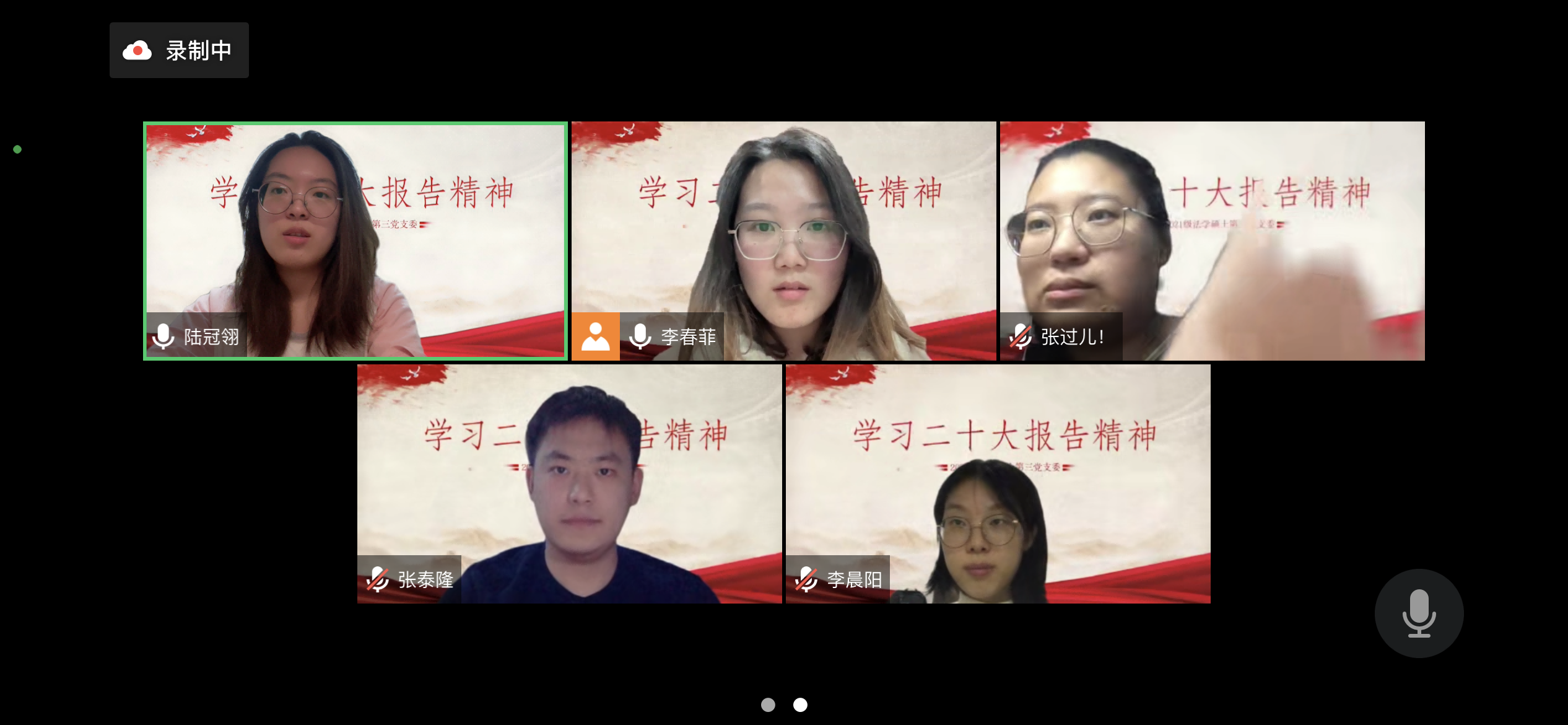 根据《太阳成集团tyc9728学习宣传党的二十大精神指导意见》和公司党委关于开展“砥砺奋进守初心,锐意进取谋新篇”深入学习贯彻党的二十大精神主题党日活动的倡导,2021级法学硕士第三党支部于10月31日积极开展主题党日活动,支部全体党员及入党积极分子积极参会,集体学习二十大精神,会议由支部书记李春菲主持。