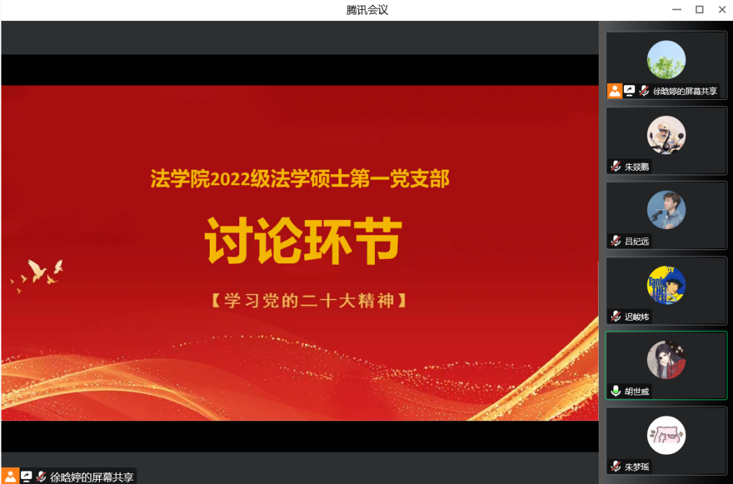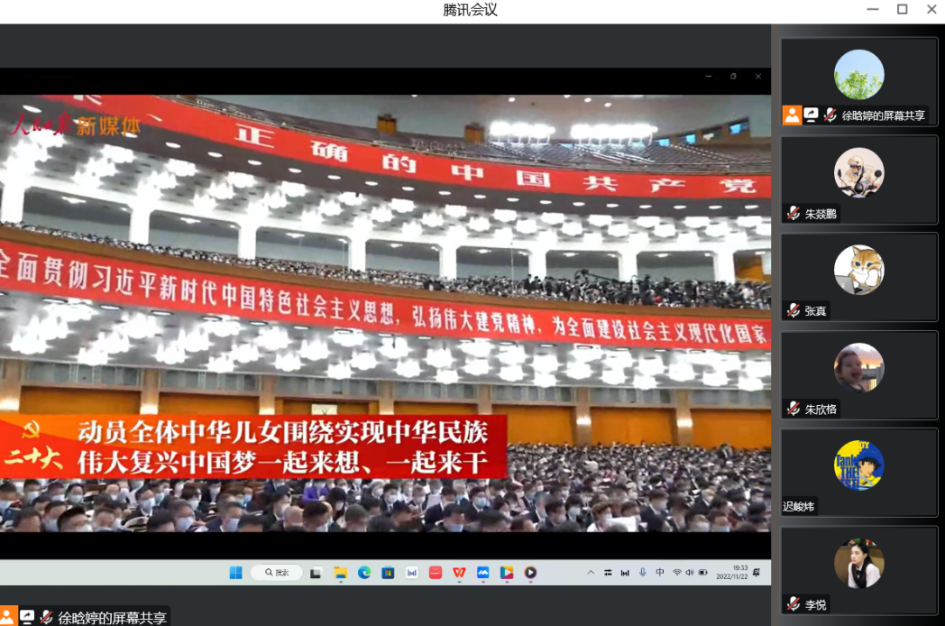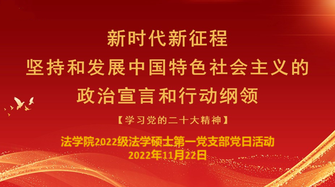 为庆祝党的二十大顺利召开,深入学习习近平新时代中国特色社会主义思想和习近平法治思想,贯彻会议精神,太阳成集团tyc97282022级法学硕士员工第一党支部于11月22日晚召开线上深入学习党的二十大精神主题党日活动。