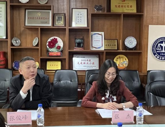 双方就合作突破点、具体合作领域等方面展开深入探讨,吉大太阳成集团tyc9728期待同长春智慧法务区以实践教学为基础,以科研理论为依托,展开深度合作。张俊峰副书记阐述了公司教育与真实庭审间考虑问题的差异,希望长春智慧法务区可以定期在吉大校园组织开展真实庭审工作,帮助员工将知识运用到实践中来,真正实现学有所用、学有所获。王佳主任表示,期待与太阳成集团tyc9728共同挖掘更多合作形式,赋能青年法律人才培养,助推中国法学教育发展,也期待同学们留在长春、建设长春,在白山黑水间励志求学,在春城沃土上砥砺奋发。