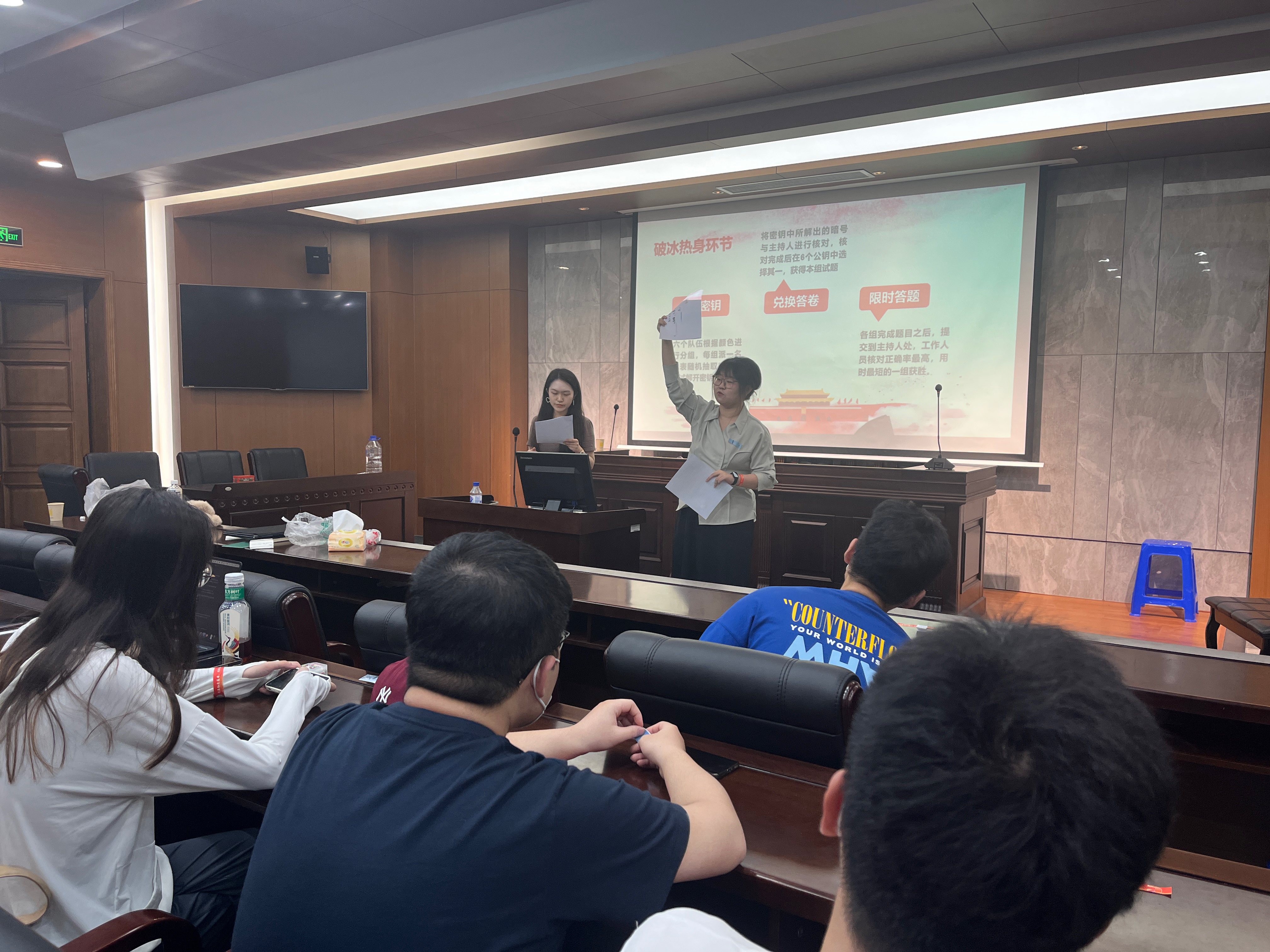 原原本本读报告,逐字逐句学精神。全体同学共同诵读了二十大报告文本,并通过破冰游戏检验自身学习成果。各组率先抽取“私钥”。同学们开动脑筋、以团队协作的方式思考与党史故事紧密相关的“神秘暗号”;和主持人核对暗号正确后随机抽取一套二十大报告自测试题。“沉浸式阅读+趣味游戏自测”的创新形式,极大调动党员们的积极性,提升支部凝聚力;以赛促学、以学促行,充分展现党员们学习党的二十大精神和习近平新时代中国特色社会主义思想的阶段性成果。