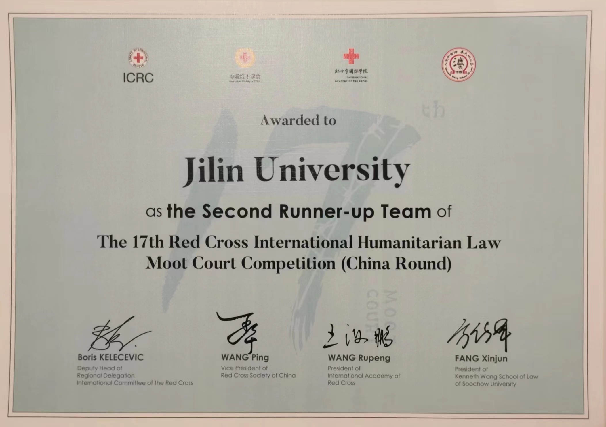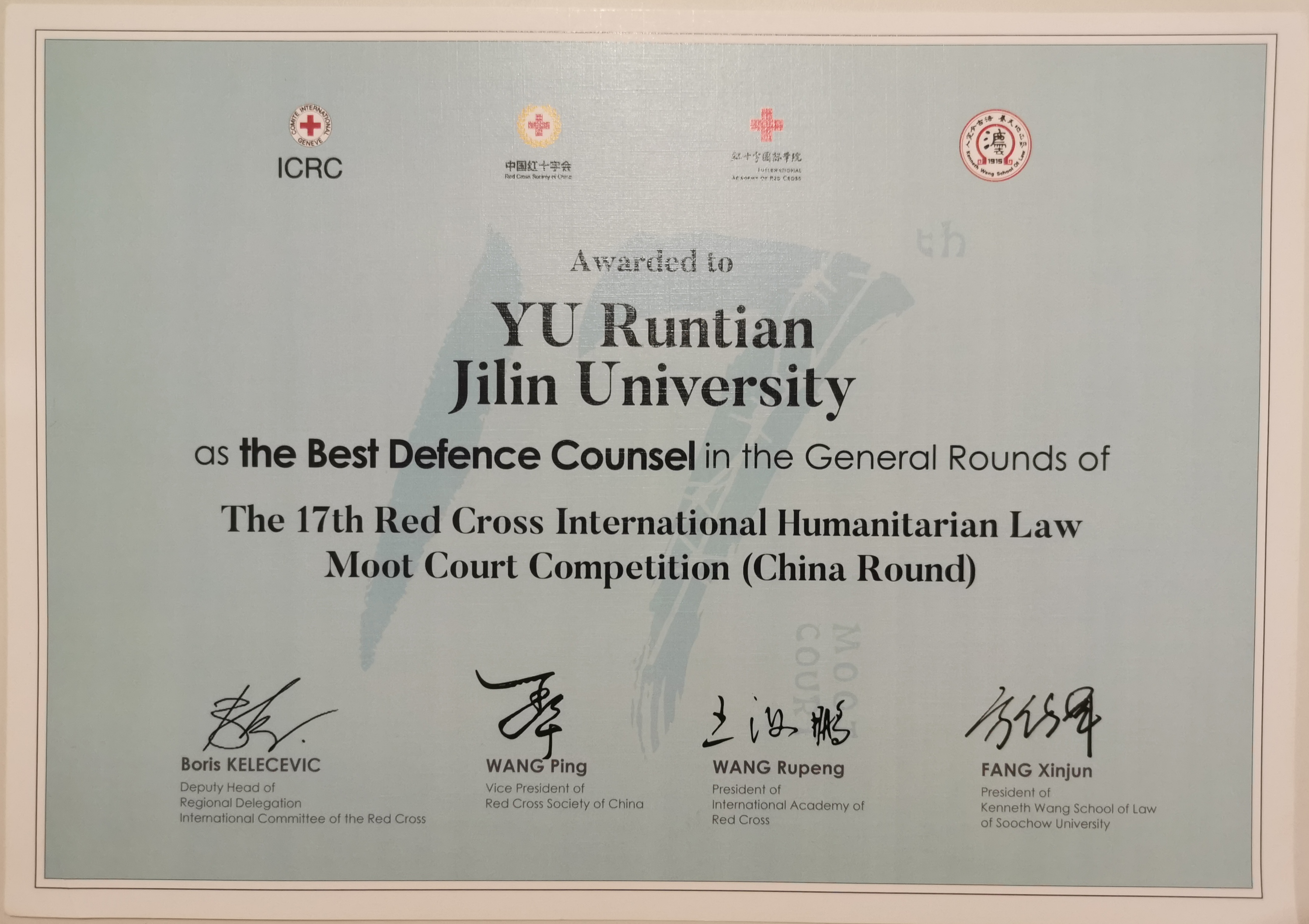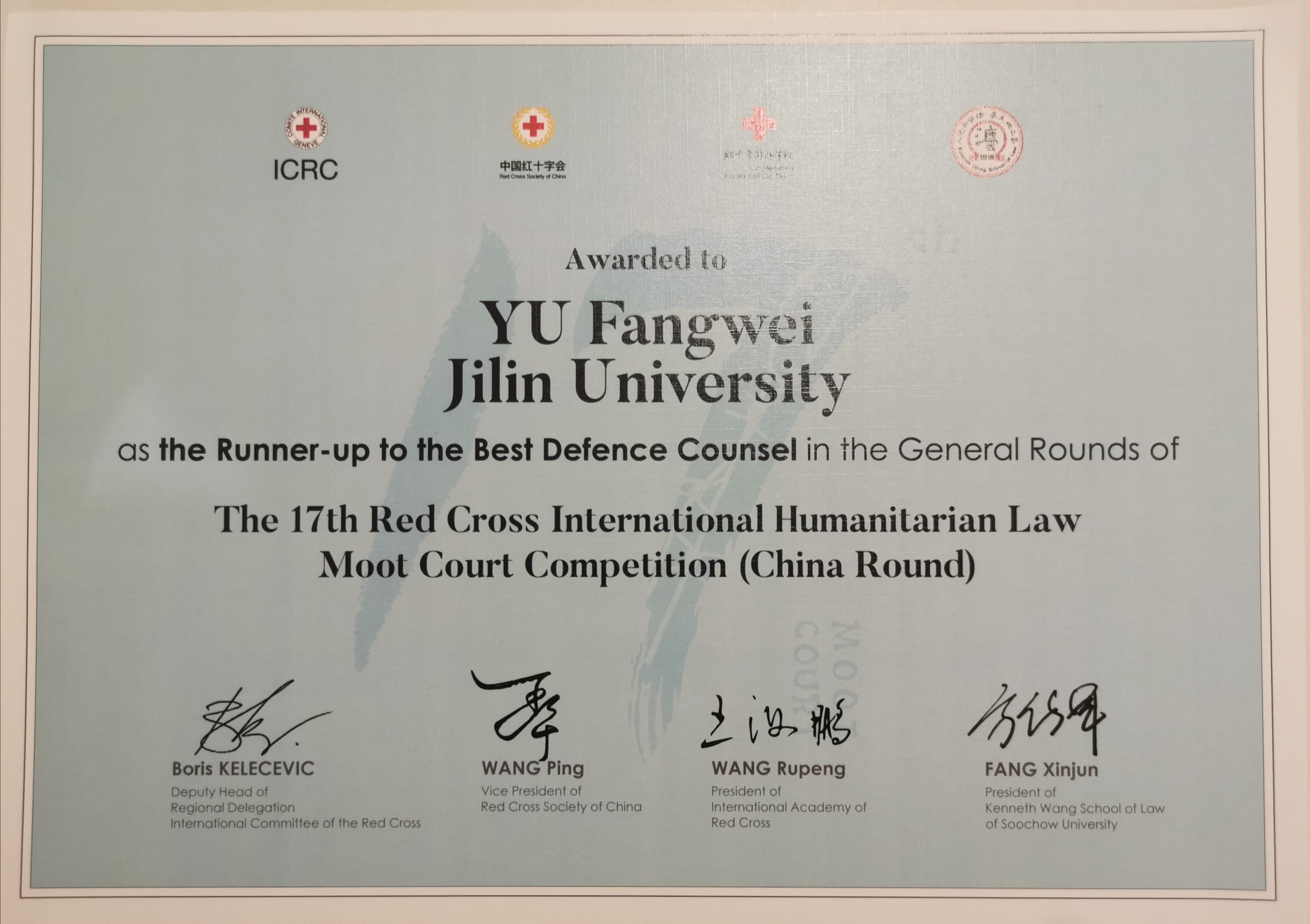 公司荣获红十字国际人道法模拟法庭竞赛季军、晋级亚太国际赛
