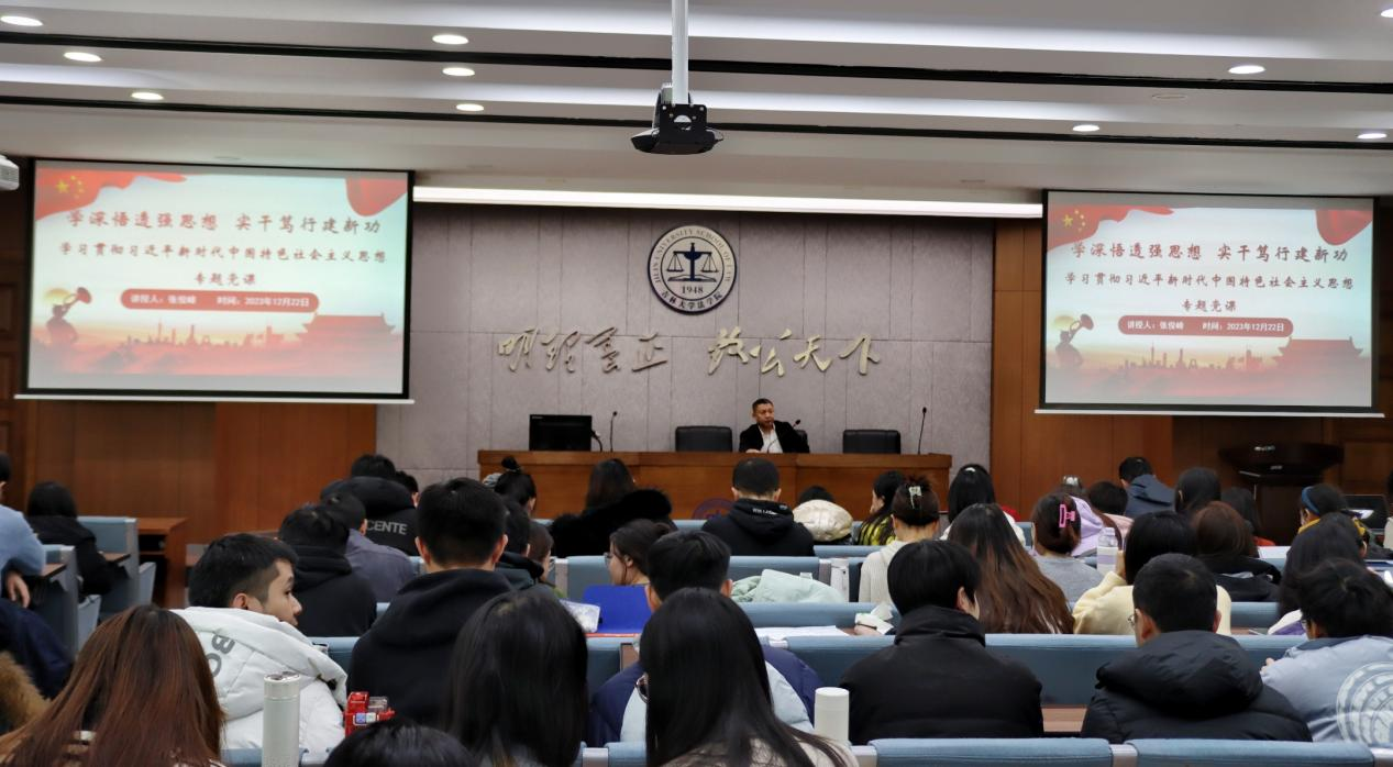 为深入贯彻落实习近平新时代中国特色社会主义思想,进一步提升研究生政治素质和思想认识,法公司党委副书记张俊峰于2023年12月22日上午在为新加入党组织的2021级研究生预备党员讲授党课。2023级研究生入党申请人和其他年级党员代表参加党课学习。