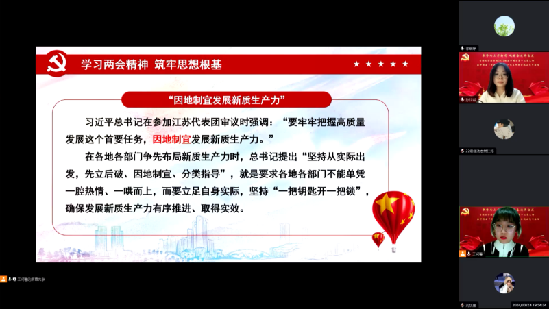 为深入学习贯彻全国两会精神,进一步巩固拓展主题教育成果,3月24日,2022级法学硕士第一党支部、法学硕士第三党支部、法律硕士(非法学)第一党支部、法律硕士(非法学)第二党支部联合组织开展“乘势而上开新局 砥砺奋进谱新篇”主题党日活动,引导研究生党员将激扬青春的热情和干事创业的精神融入学习生活、化为行动力量,在勤奋学习、实干笃行中创造实绩、扬帆远航。本次活动由2022级法学硕士第三党支部书记王珂馨主持。