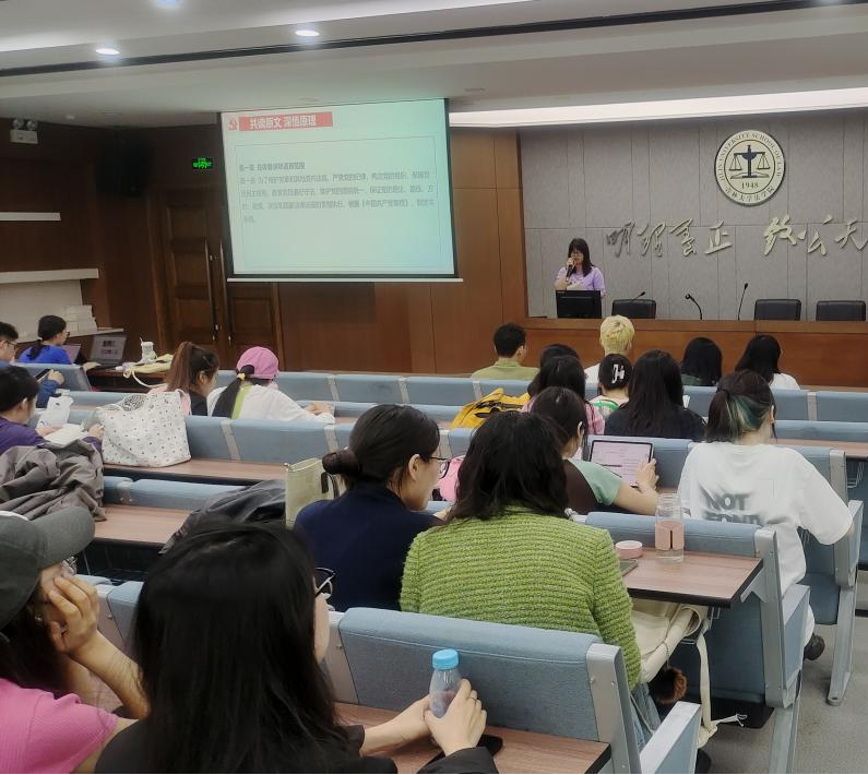 2023级法律硕士(非法学)第二员工党支部书记刘海霞针对《中国共产党纪律处分条例》原文中的重要内容讲授专题党课,着重理清《条例》修订背景,对于新修订《条例》的亮点进行深入解读。在学深学透、掌握具体条文内涵的基础之上,进一步明确:了解纪律是前提,遵守纪律是关键。全体党员和积极分子应将纪律规矩落实到工作和生活之中,不断提高自身的党性修养和纪律意识。