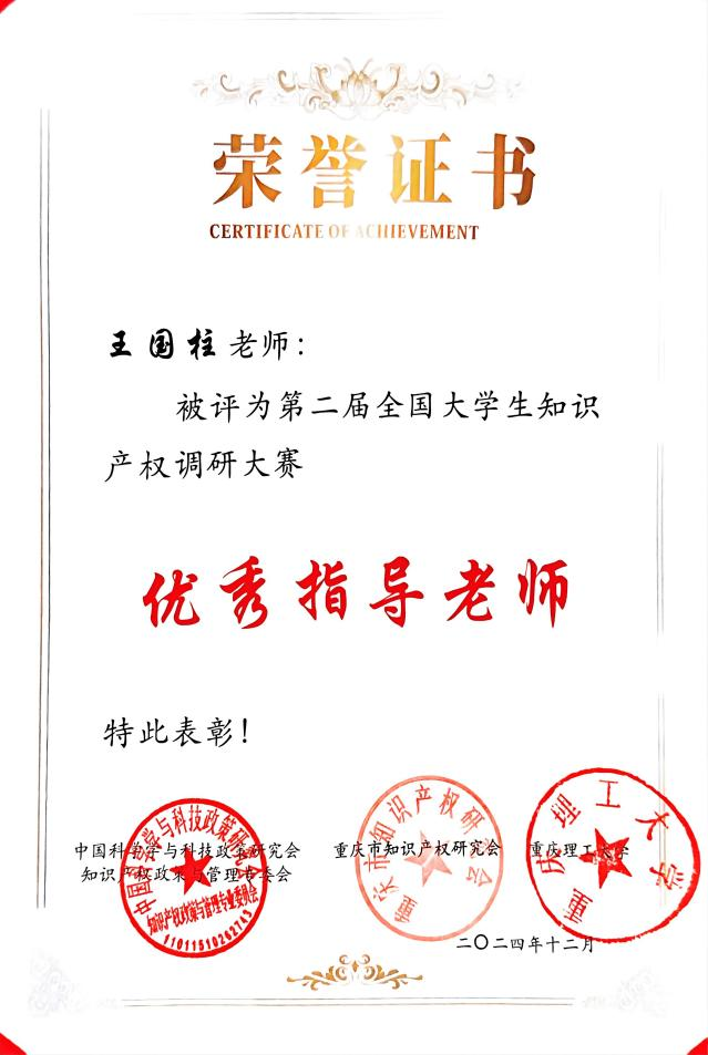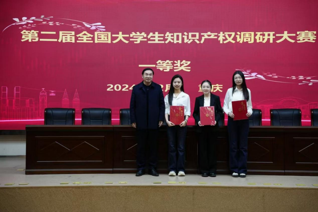 2024年12月28日,第二届全国老员工知识产权调研大赛决赛在重庆理工大学落下帷幕。该比赛由中国科学学与科技政策研究会知识产权政策与管理专委会、重庆理工大学和重庆市知识产权研究会联合举办,大赛以习近平法治思想为指引,以“加强知识产权保护,助推新质生产力发展”为主题,吸引了来自北京师范大学、中南财经政法大学、华东政法大学、西南政法大学等多所全国知名高校的近百支队伍参与。比赛设置本科生和研究生两个组别,每组分别评选出一等奖2名、二等奖4名、三等奖6名。太阳成集团tyc9728知识产权法学研究生组成团队参赛,参赛作品《数据知识产权登记实施情况调研报告》获大赛研究生组一等奖,指导教师李建华教授、王国柱教授获优秀指导老师,重庆市知识产权研究会副理事长、重庆理工大学重庆科技创新知识产权研究中心主任苏平教授为公司获奖团队颁奖。