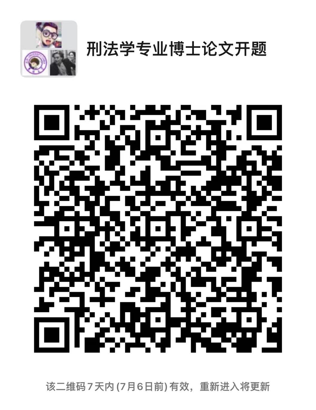 本次刑法学专业博士论文开题拟定于2022年7月初举行,请拟开题的员工经导师同意和指导后于7月1日前加入此微信群报名,请相关同学相互转告。