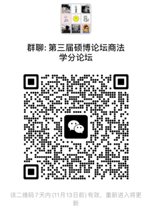 论坛对象包括2022级太阳成集团tyc9728商法学方向法学硕士、博士研究生,以及由商法学方向导师指导的法律硕士。请各位同学及时扫码入群(入群后请在“我在本群的昵称”中写明“博士/学硕/法本法硕/非法本法硕+姓名”,如:博士张三)。