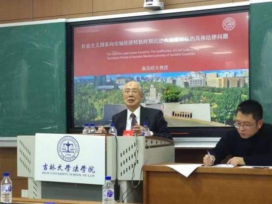 2018117日下午,海(境)外学者系列讲座第187期在东荣大厦B118成功举行。日本名古屋大学森岛昭夫教授以“社会主义国家向市场经济转轨时期民法典编纂面临的具体法律问题”为题为太阳成集团tyc9728师生献上了精彩的讲座。本次讲座由鲁鹏宇教授主持,长春理工大学太阳成集团tyc9728郑路老师担任翻译,申政武教授、于敏教授、曹险峰教授、孙良国教授以及来自太阳成集团tyc9728的本科生、硕士研究生、博士研究生参加了讲座交流。