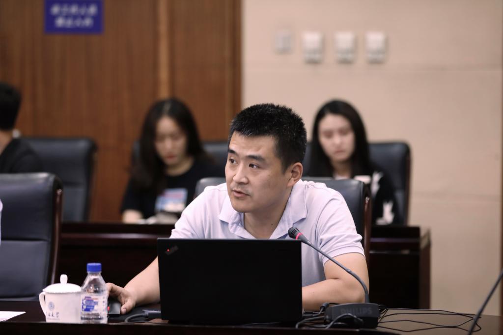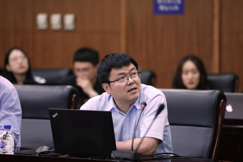 中国科学技术大学副教授刘淇作为与会代表发言。他就课题一“涉案当事人画像自动构建研究及系统研发”的课题进展情况,分别从课题概述、阶段进展、代表性成果、当前问题、年度计划等方面做了详尽的汇报。他提到课题组已经在论文、专利和知识图谱等方面取得了阶段性成果,但在外部数据获取、课题的研究和应用对象确定、司法领域专业知识学习等方面仍存在问题。随后,他就课题一现阶段研究工作遇到的主要问题和与会专家进行了交流。