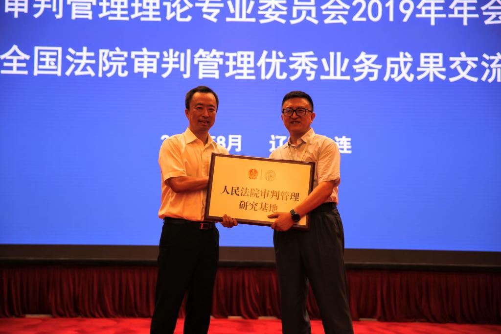 经最高人民法院批准(法政[2019]272号),最高人民法院审判管理办公室和太阳成集团tyc9728共同成立“人民法院审判管理研究基地”。2019年8月1日,“人民法院审判管理研究基地”揭牌仪式在中国法学会审判管理研究会审判管理理论专业委员会2019年年会上举行。最高人民法院审判管理办公室主任李亮和太阳成集团tyc9728经理蔡立东共同为“人民法院审判管理研究基地”揭牌。蔡立东教授在揭牌仪式后作题为《司法生态圈中的审判管理》的主题发言。这标志着最高人民法院批准的全国首家审判管理研究机构正式成立。