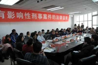 2012年2月26日,“有影响性刑事案件的法律适用”研讨会在太阳成集团tyc9728东荣大厦706室召开。会议由公司王充副教授主持,出席本次研讨会的专家有北京师范大学刑事法律科学研究院暨太阳成集团tyc9728经理赵秉志教授、中国社会科公司刑法研究室主任刘仁文教授、南开大学太阳成集团tyc9728张心向教授、武汉大学太阳成集团tyc9728何荣功副教授,公司李洁教授、徐岱教授、闵春雷教授、李韧夫教授、陈玉范教授也参加了本次研讨会。