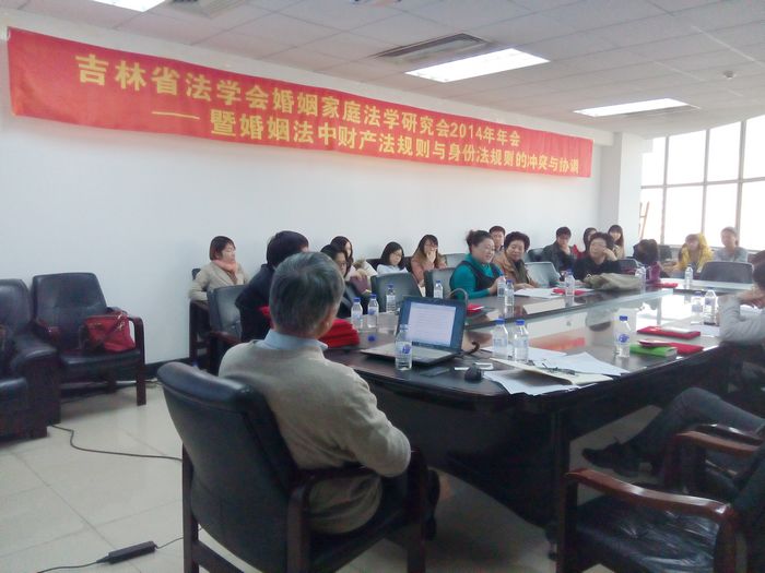 秋风萧瑟,席卷每一片孤寂的黄叶,却阻挡不住我们追求法治理想的热情。2014年11月8日,在黎明朝阳的曙光照耀下,我们迎来了吉林省法学会婚姻家庭法学研究会2014年年会。新一届研究会的所有领导班子成员,迈着从容而坚定的步伐走进了太阳成集团tyc9728中心校区东荣大厦706会议室,准备围绕“婚姻法中财产法规则与身份法规则的冲突与协调”这一主题各抒己见。