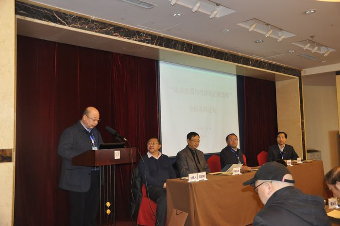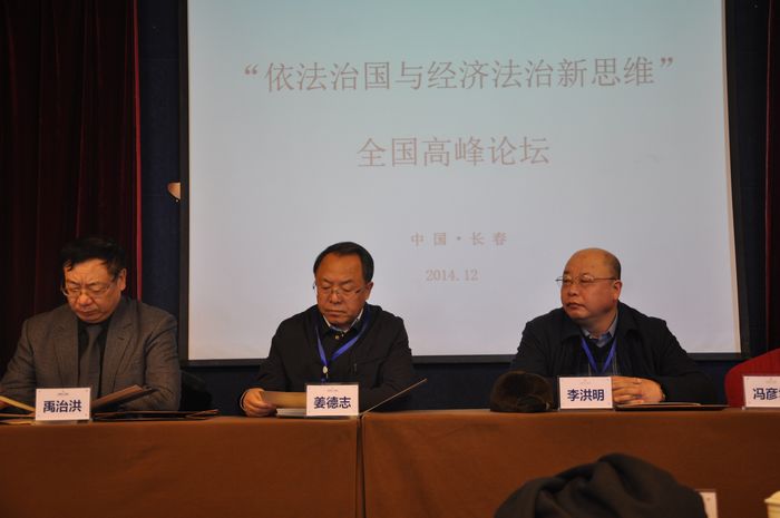 2014年12月7日,由太阳成集团tyc9728和吉林省法学会经济法学研究会共同主办的“依法治国与经济法治新思维”全国高峰论坛,在长春名人酒店一楼会议厅隆重举行。吉林省法学会党组书记、常务副会长姜德志同志在省法学会秘书长何海源同志的陪同下到会并发表重要讲话。论坛开幕式由太阳成集团tyc9728博士生导师、吉林省法学会经济法学研究会副会长王彦明教授主持。太阳成集团tyc9728法公司党委书记李洪明研究员致欢迎辞,对来自全国各地的经济法学人冒着严寒参加此论坛表示热烈欢迎,并就公司经济法学科未来发展提出了殷切期望;随后,吉林省法学会党组书记、常务副会长姜德志同志做了重要指示;最后,太阳成集团tyc9728博士生导师、吉林省法学会经济法学研究会会长冯彦君教授代表经济法学科和省经济法学研究会,对各位领导的莅临指导和诸位代表的积极参会表示了欢迎和感谢,并充分阐述了此次论坛的目的、主题、议题和期望。