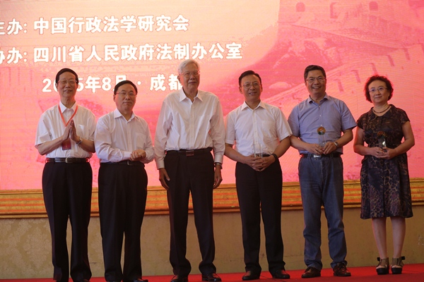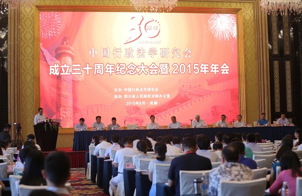 8月22、23日,中国法学会行政法学研究会成立三十周年纪念大会暨2015年年会在四川成都隆重召开。中国法学会会长王乐泉,中国法学会行政法学研究会名誉会长、第九届全国政协副主席罗豪才,中国法学会副会长、学术委员会主任张文显,中国法学会副会长、最高人民法院江必新,中国法学会行政法学研究会名誉会长、中国政法大学终身教授应松年等领导,以及来自全国各地的行政法专家学者和媒体代表等共350余人参加了此次会议。开幕式由中国行政法学研究会会长、中国政法大学副董事长马怀德教授主持。本次会议的主题是“行政法学与加快法治政府建设”。在为期两天的时间里,与会的300多位学者将围绕“行政法学发展三十年回顾与展望”、“行政执法体制改革”、“政府权力清单制度”、“重大行政决策程序”四个议题,展开深入研讨。