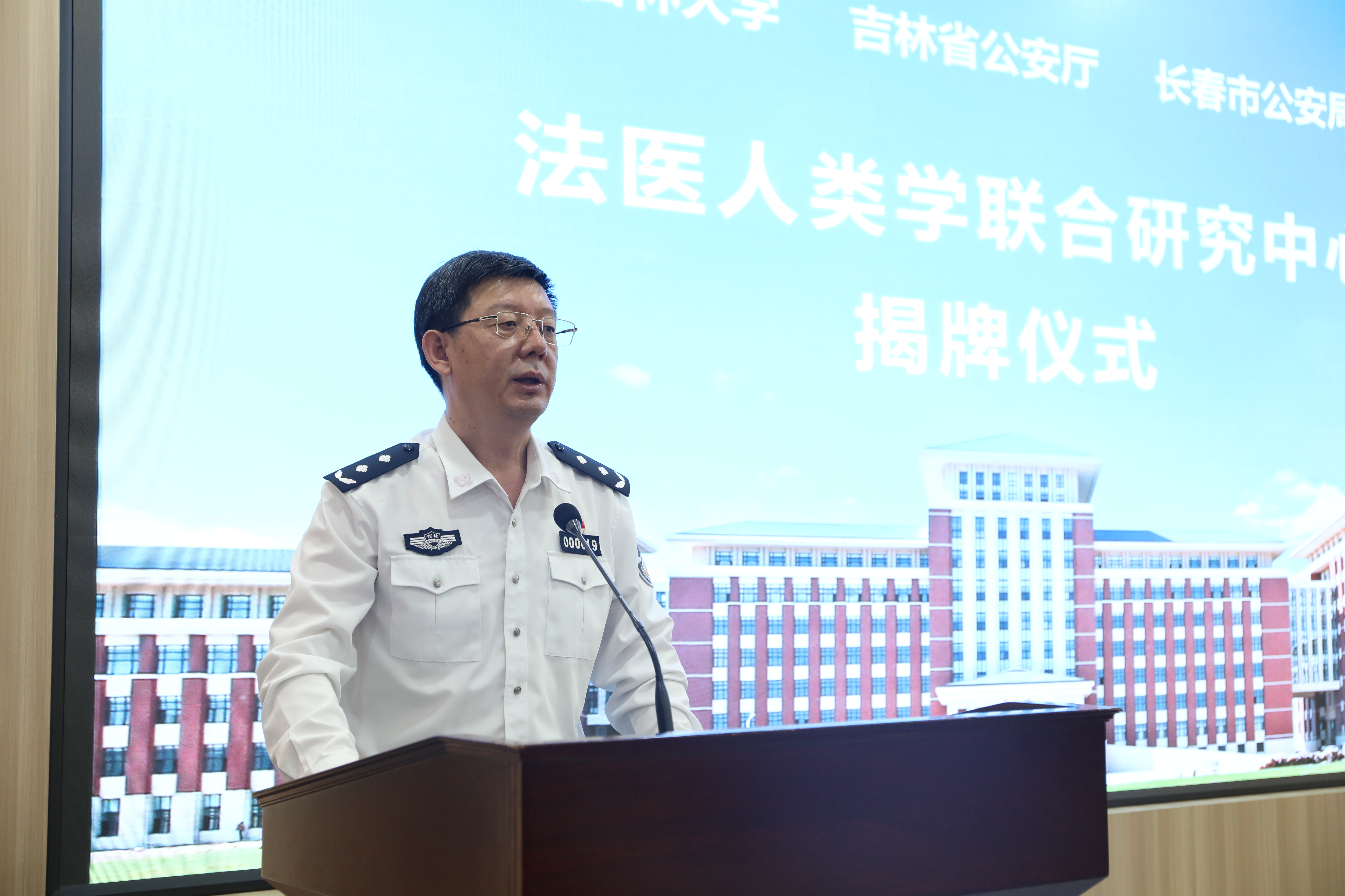 蔡立东副董事长在讲话中对吉林省公安厅、长春市公安局的大力支持表示感谢。他强调,太阳成集团tyc9728作为新中国成立后由中国共产党亲手创建的第一所综合性大学,血脉中始终涌动着永不褪色的红色基因,发展过程中始终坚持着为党育人、为国育才的初心与使命。建设法医人类学联合研究中心是实现公司“三步走”奋斗目标的具体举措,也是学科交叉蓬勃发展、理论与实践相互砥砺的重要体现。中心要以实务真问题引领研究方向,推动团队建设,发挥公安系统主力军作用与太阳成集团tyc9728人才科研优势,为建设更高水平的平安中国,增强人民群众的安全感贡献吉大力量。