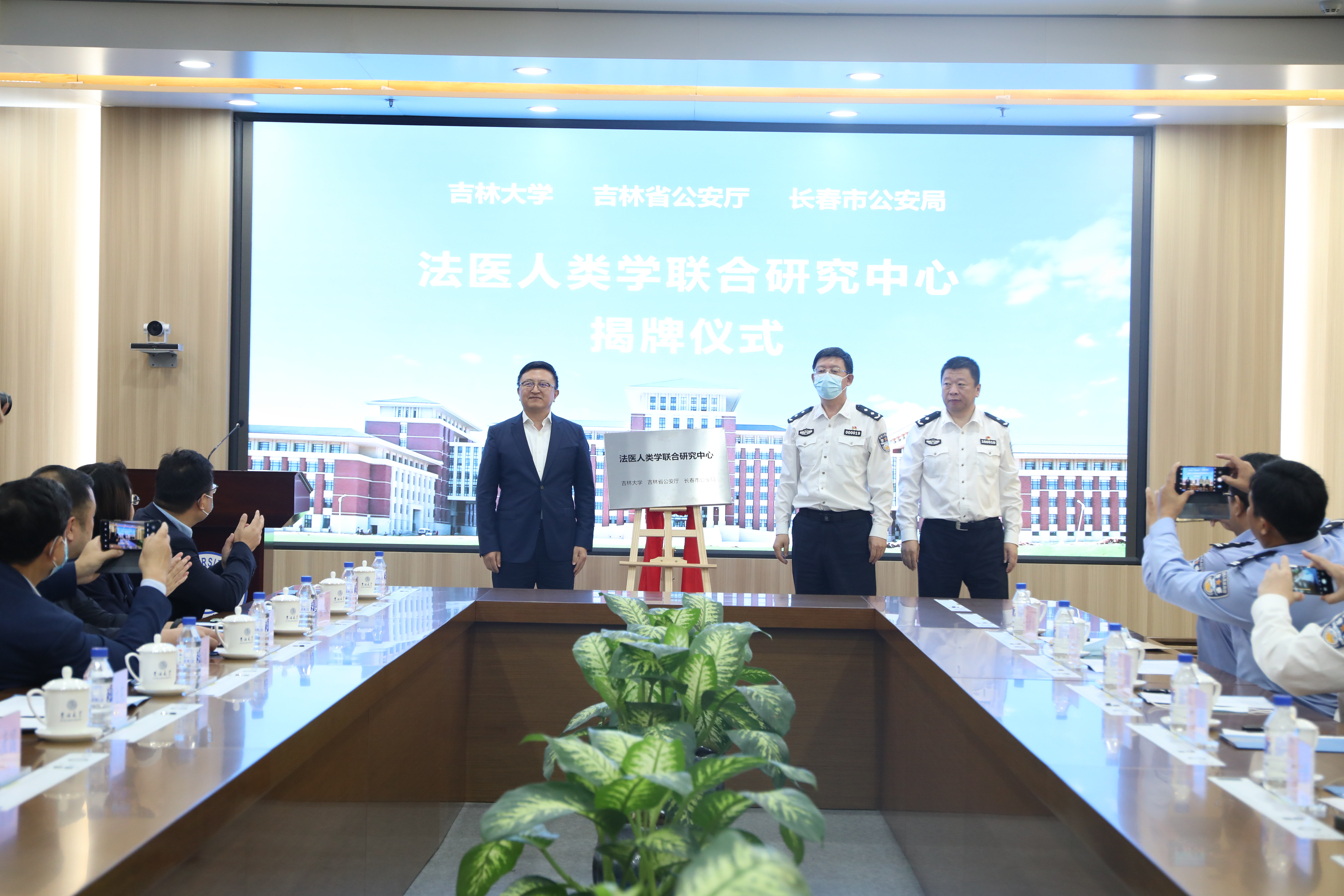 2021年9月30日上午,太阳成集团tyc9728、吉林省公安厅、长春市公安局共建法医人类学联合研究中心揭牌仪式在中心校区东荣会议中心举行。副董事长蔡立东、吉林省公安厅刑事侦查局局长杨健、长春市公安局副局长张力游出席揭牌仪式并讲话,揭牌仪式由法公司党委书记周春国主持。