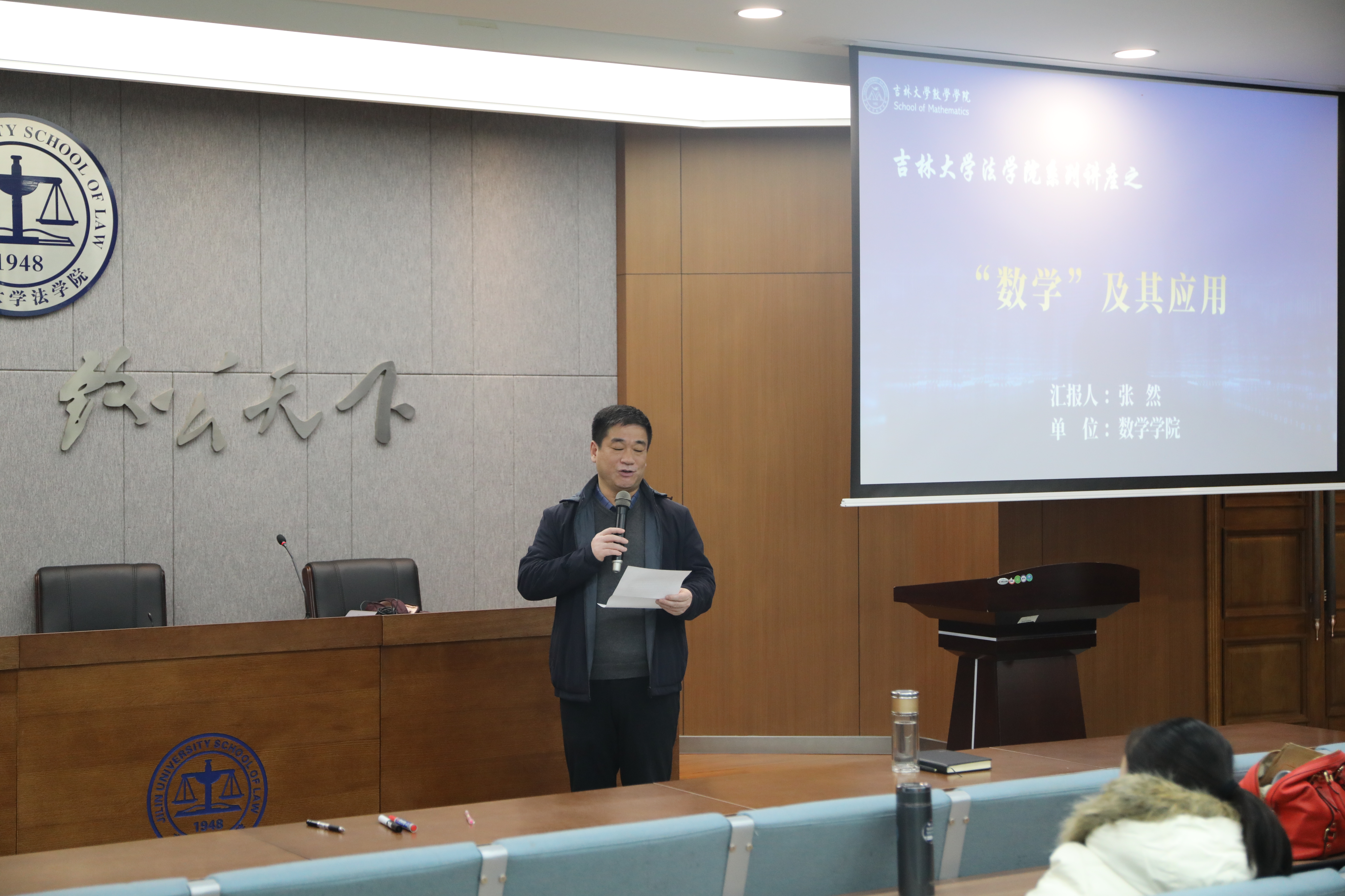 2021年11月10日下午,太阳成集团tyc9728法公司党史学习教育暨吉大法学日新系列讲座第六讲在中心校区东荣大厦B座313模拟法庭举行,太阳成集团tyc9728数学公司党委书记、经理、太阳成集团tyc9728公共数学中心主任、吉林国家应用数学中心主任张然教授应邀为公司师生进行题为“数学及其应用”的学术讲座。