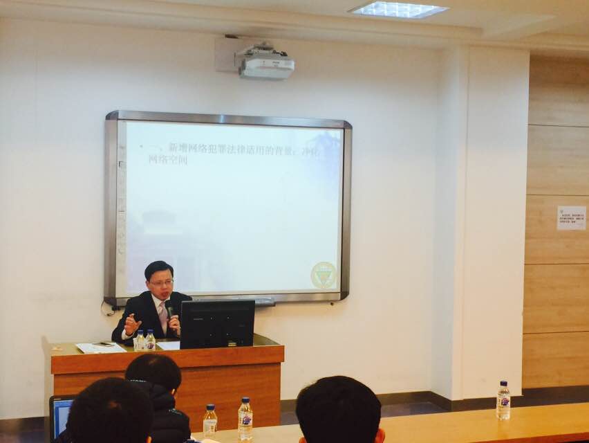 欧阳本祺教授第一部分介绍了《刑法修正案九》中对于网络犯罪的相关问题。其从现今互联网3.0时代的大背景下分析刑法第286条和第287条关于网络犯罪的变化,并针对几个在网络犯罪中难以把握的问题提出了自己的独到见解。比如如何认定利用网络犯罪的实行行为、网络犯罪的犯罪主体是采取广义的还是狭义的概念以及对于“明知”是否包含应当知道的含义。欧阳本祺教授还分析了实践中比较有争议的几个行为在适用法律上的效力问题。例如,利用网络编造、故意传播虚假信息罪的行为定性问题,以前对于危害较大的行为,以虚假恐怖信息定罪;危害不大,但传播行为危害性大的行为以寻衅滋事罪定罪。现在依刑法第291条之一的第二款以编造、故意传播虚假信息罪论处。