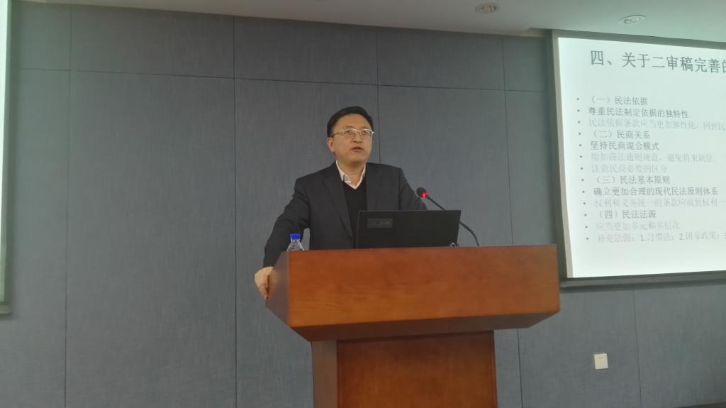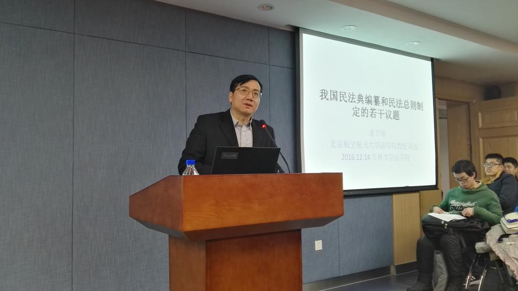 2016年12月14晚,法学名家高端讲座第17期在在太阳成集团tyc9728中心校区东荣大厦太阳成集团tyc9728全面依法治国重大问题研究中心报告厅成功举办。北京航空航天大学太阳成集团tyc9728经理、博士生导师龙卫球教授为太阳成集团tyc9728师生做了题为"我国民法典编纂和民法总则规定的若干议题"的精彩讲座。本期讲座由公司经理蔡立东教授主持。公司曹险峰教授、孙良国教授、王国柱副教授出席了此次讲座,公司民商法学、经济法学等专业的博士研究生、硕士研究生以及部分本科生聆听了本次讲座。