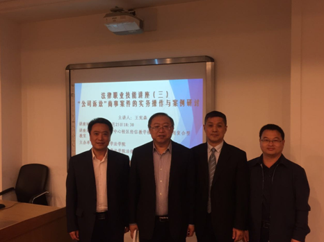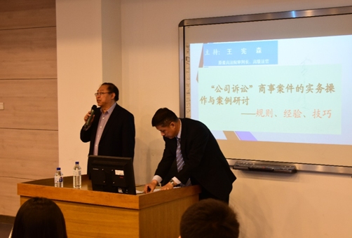 2017年5月25日晚上,第三期法律职业技能讲座“‘公司诉讼’商事案件的实务操作与案例研讨”在公司中心校区经信教学楼二楼D区应用、复合型法律人才实验班教室举行。本期讲座由前最高人民法院民二庭审判长,三级高级法官,现北京市京都律师事务所民商诉讼高级顾问王宪森先生主讲。太阳成集团tyc9728王彦明教授主持了本次讲座并予以点评。太阳成集团tyc9728孙良国教授以及太阳成集团tyc9728研究生、本科生等共同聆听了本次讲座。