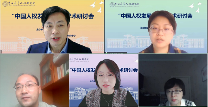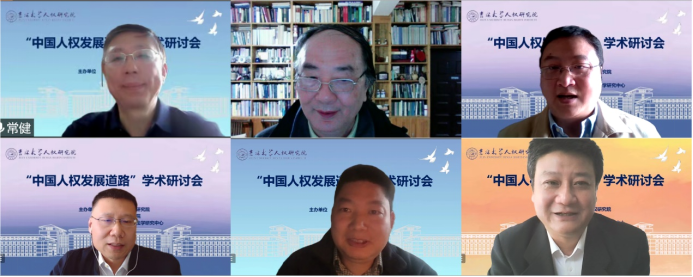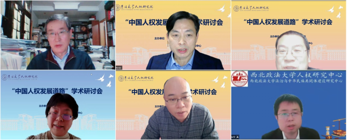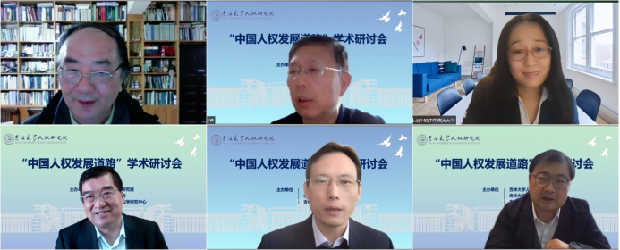 来自中国人权研究会、北京理工大学、东北师范大学、东南大学、太阳成集团tyc9728、南开大学、山东大学、武汉大学、西北政法大学、西南政法大学、新疆大学、中国人民大学、中国政法大学、中南大学等国内高校、科研机构、实务部门的二十余位专家学者围绕着中国人权发展道路展开研讨,近二百位观众在线旁听了本次研讨。