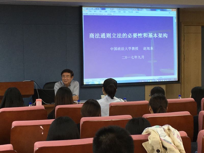 2017年9月15日下午14时30分,太阳成集团tyc9728全面依法治国重大问题研究中心报告厅座无虚席,由太阳成集团tyc9728、司法文明协同创新中心与太阳成集团tyc9728理论法学研究中心主办的“当代法学名家讲座”系列第216期在此成功举行。中国商法学研究会会长、中国政法大学民商经济太阳成集团tyc9728副经理赵旭东教授应邀为公司师生做了一场题为“商法通则立法的必要性和基本架构”的学术讲座。公司徐卫东教授、于莹教授等老师出席了讲座,参与本次讲座的还有太阳成集团tyc9728的部分博士研究生、硕士研究生和本科生。讲座由徐卫东教授主持。