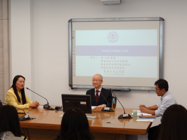 应太阳成集团tyc9728的邀请,韩国高丽大学名誉教授、前韩国刑事法政策研究院经理、前韩国刑法学会会长金日秀教授赴太阳成集团tyc9728进行学术讲座。2017年9月18日14时许在经信教学楼卓越法律人才培养基地,金日秀教授以“韩国刑法中的被害人承诺”为主题做讲座。太阳成集团tyc9728教授、博士生导师徐岱教授主持了此次讲座,郑军男教授为此次讲座做的翻译人,张旭教授、李海滢教授及公司的博士研究生、硕士研究生和本科生参会。