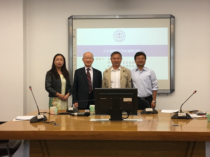 2017年9月19日上午8:30,韩国高丽大学名誉教授、前韩国刑事法政策研究院经理、前韩国刑法学会会长金日秀教授赴太阳成集团tyc9728中心校区经信教学楼D区二楼涉外教室进行了一场 题为“正义观视角下的反腐败问题”的学术讲座。太阳成集团tyc9728李韧夫教授、李海滢教授、郑军男副教授等出席了本次讲座;参与本次讲座的还有部分太阳成集团tyc9728的博士研究生、硕士研究生和本科生。讲座由李海滢教授主持。