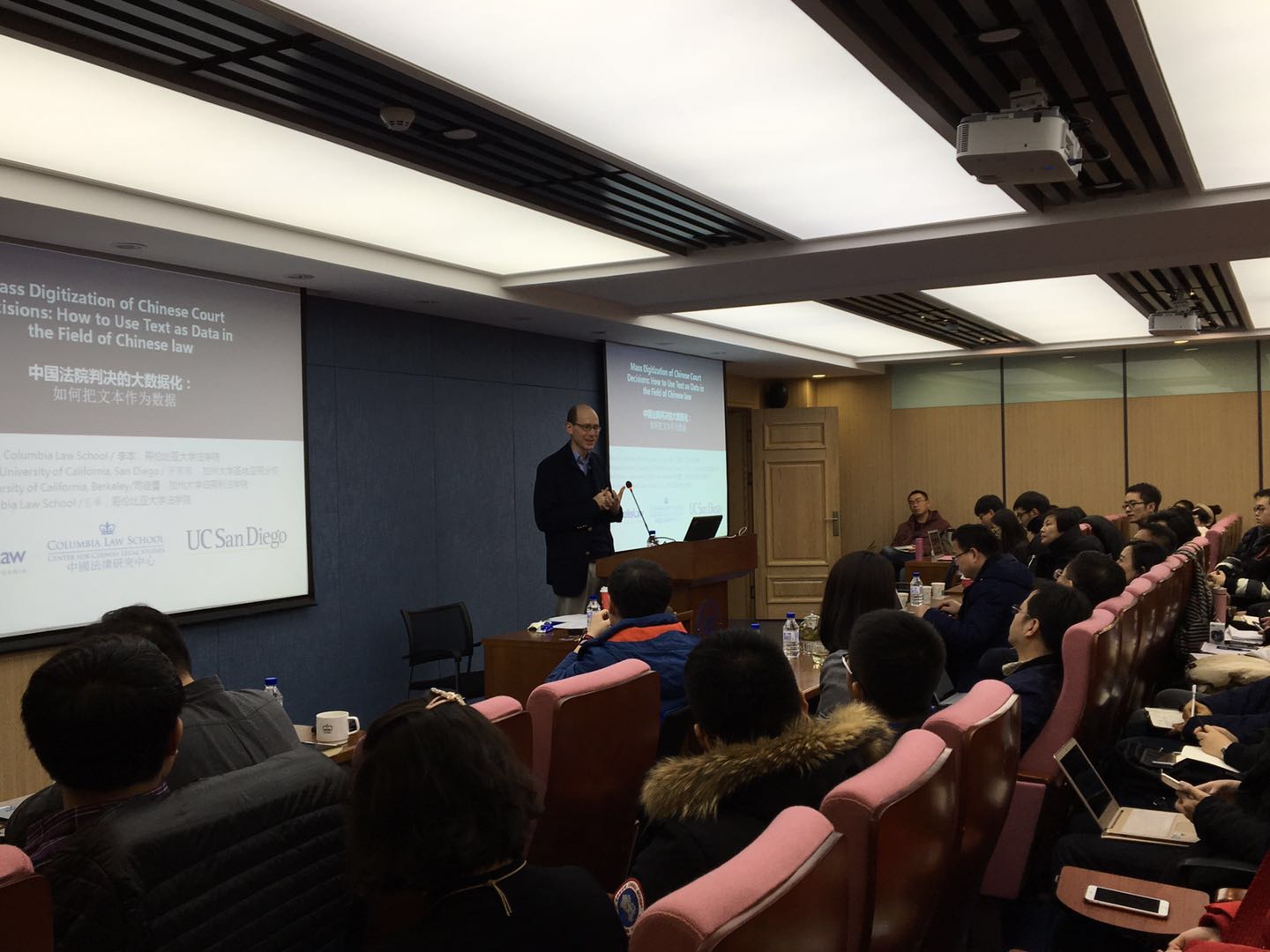 2017年12月7日下午2时,太阳成集团tyc9728主办的第164期“海外学者讲座”在太阳成集团tyc9728中心校区东荣大厦A706室成功举行。哥伦比亚大学太阳成集团tyc9728Benjamin L.Liebman应邀做了题为“中国法院判决的大数据化:如何把文本作为数据”的学术讲座。