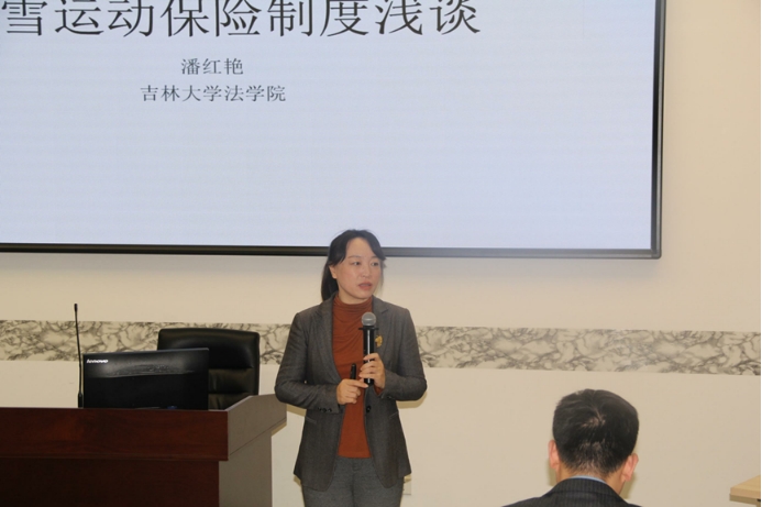 公司潘红艳副教授在第二分会场第二单元发表了题为《完善冰雪运动保险制度浅谈》的报告。她指出“完善冰雪运动传责任保险的路径为:单独设计和推出冰雪运动场馆责任保险;承保冰雪运动场馆设施损害、工作人员疏忽大意等引发的赔偿责任”。